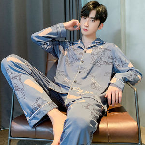 100%纯棉睡衣男秋季休闲青年卡通家居服男士可外穿套装春秋两件套
