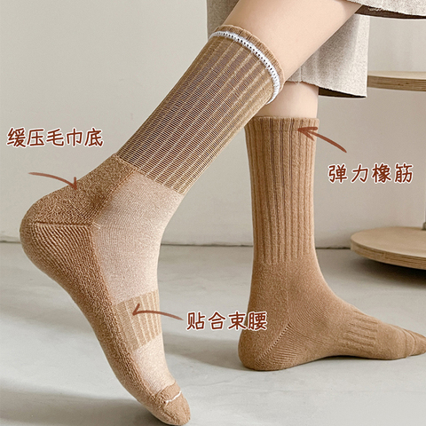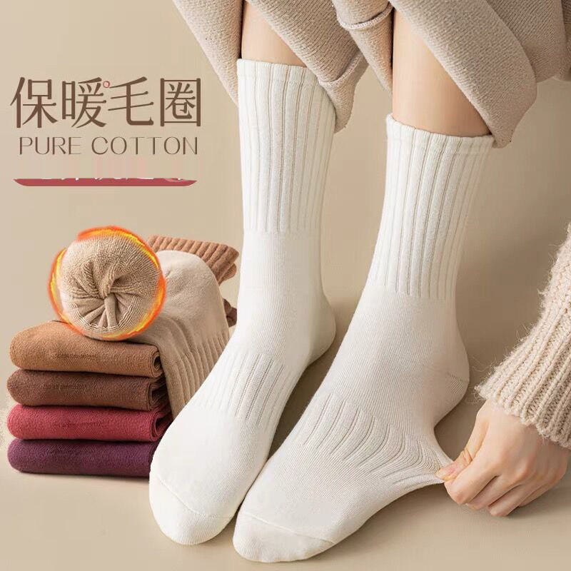 芬腾女士中筒袜冬季加厚保暖高密毛圈棉袜抗寒长袜男士中筒毛圈袜