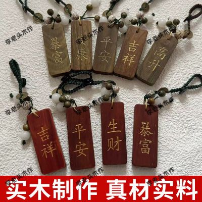 紫檀木檀木雕刻描金钥匙扣礼物古风招财平安挂件刻字木牌定制简约