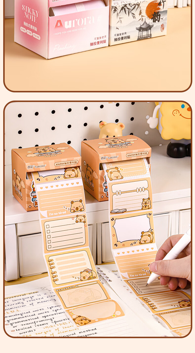真彩(TRUECOLOR)卡皮巴拉抽拉式便利贴初中生专用高颜值错题便签大号全粘记事贴纸小学生可书写做笔记便签纸7228A