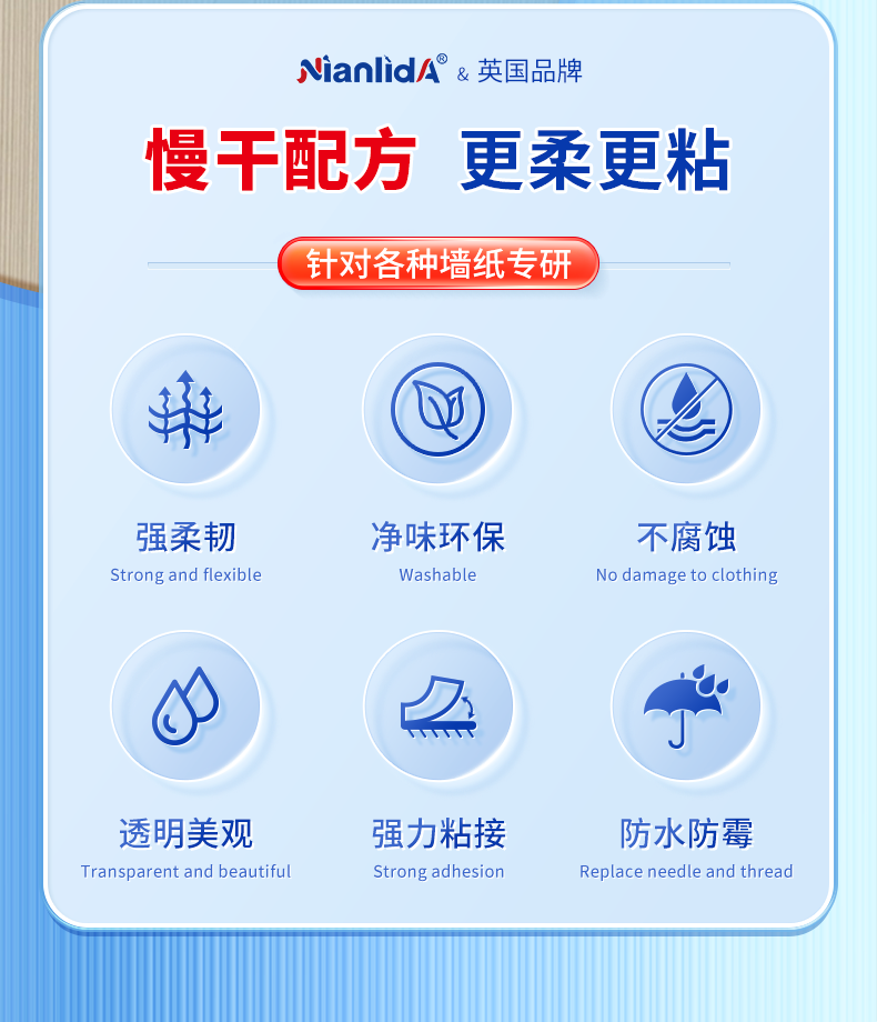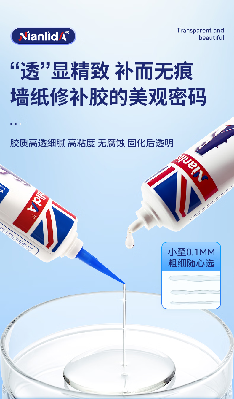 NianlidA【英国品牌】墙纸修补胶水墙布修补胶壁纸专用免调糯米胶粘壁纸开缝脱落修补强力墙纸胶水 【轻奢生活】墙纸修补胶50ml