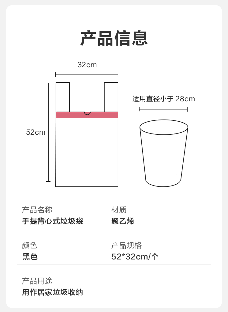垃圾袋家用加厚手提式52*32背心式黑色卫生间学生宿舍一次性塑料袋 50/卷