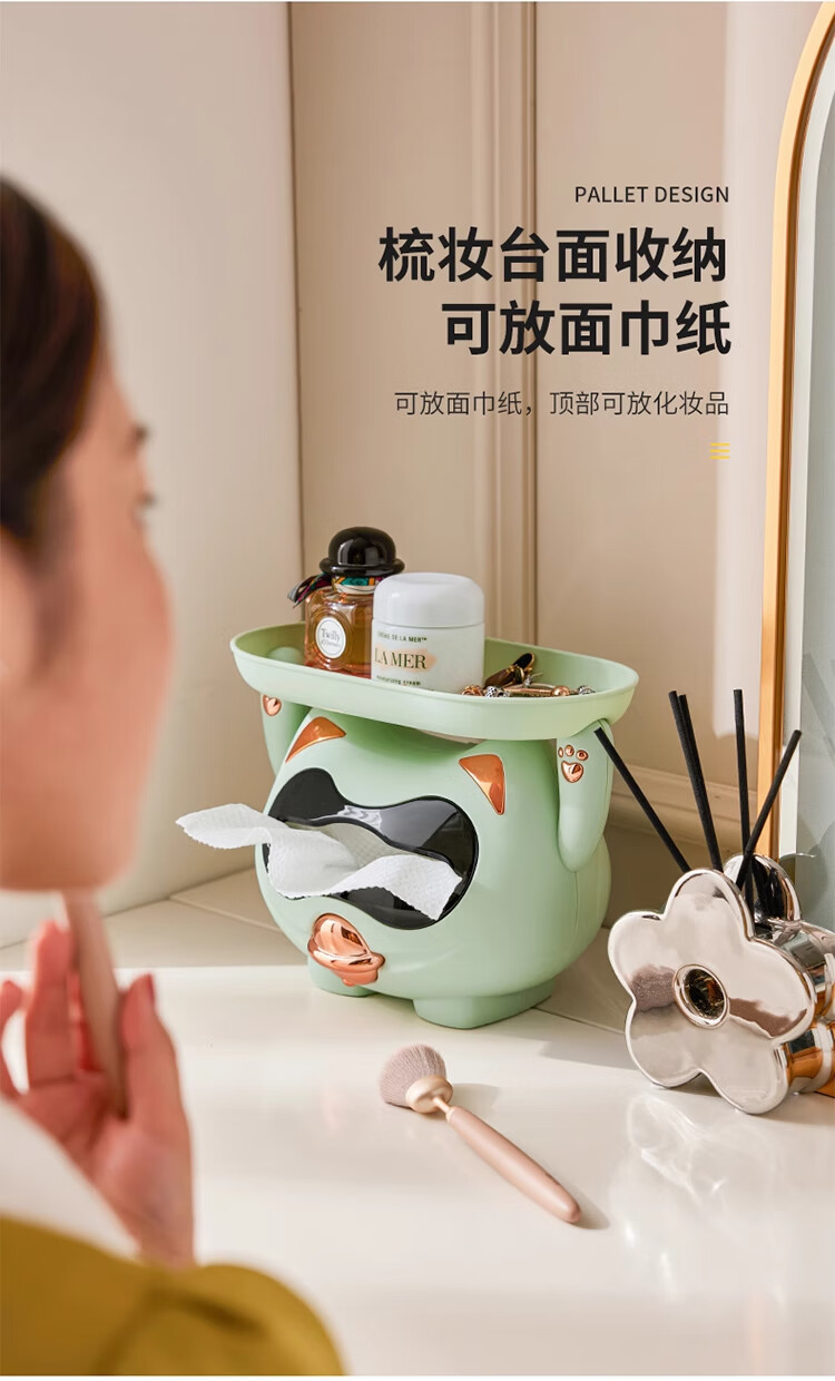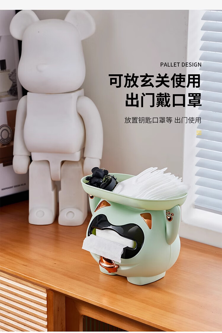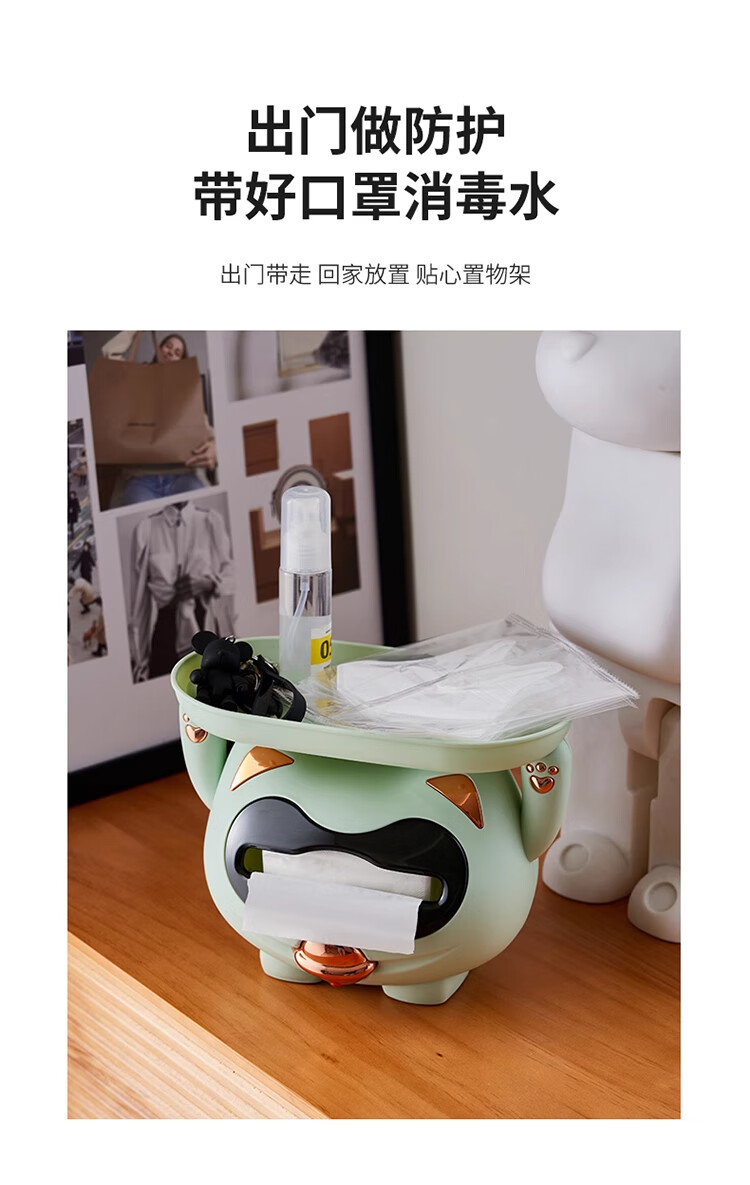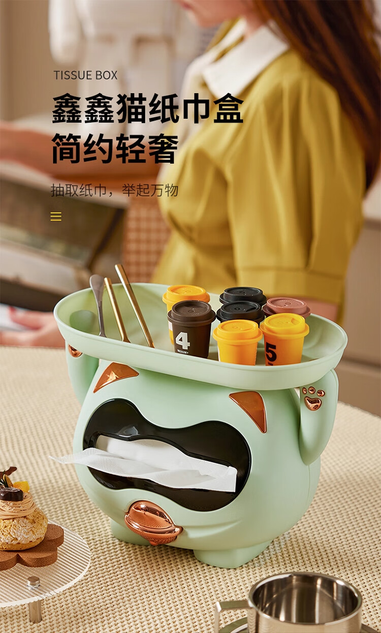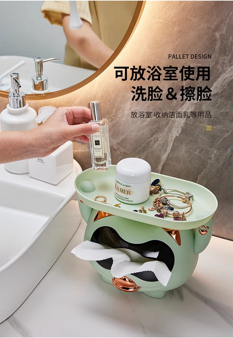 木格格创意可爱纸巾盒客厅高档轻奢多功能桌面收纳盒弹簧抽纸盒家用简约 青草绿【内置弹簧,纸巾不掉落】