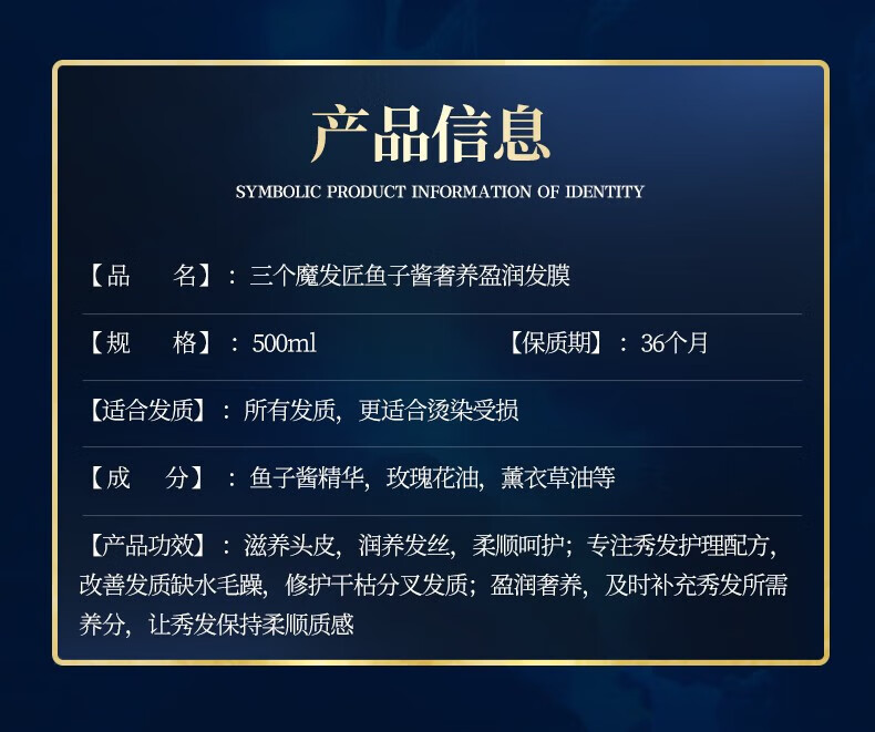 三个魔发匠鱼子酱发膜 修复干枯改善毛躁护发素 柔顺光泽养护发质免蒸焗油膏 【特惠3瓶装】鱼子酱发膜1500ml