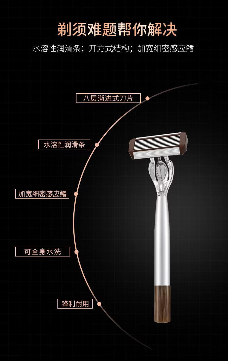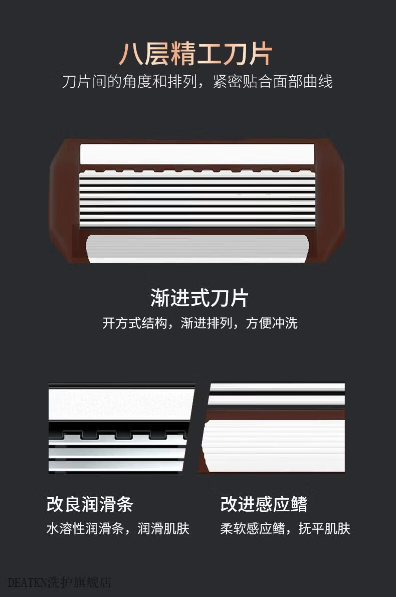 DEATKN德国高端手动剃须刀男士防刮伤2026新款八层刀片硬胡子专用旅行便携款金属刀头刮胡刀修脸百万热销 【1刀架+6个刀头+剃须膏+收纳盒】爆款套组