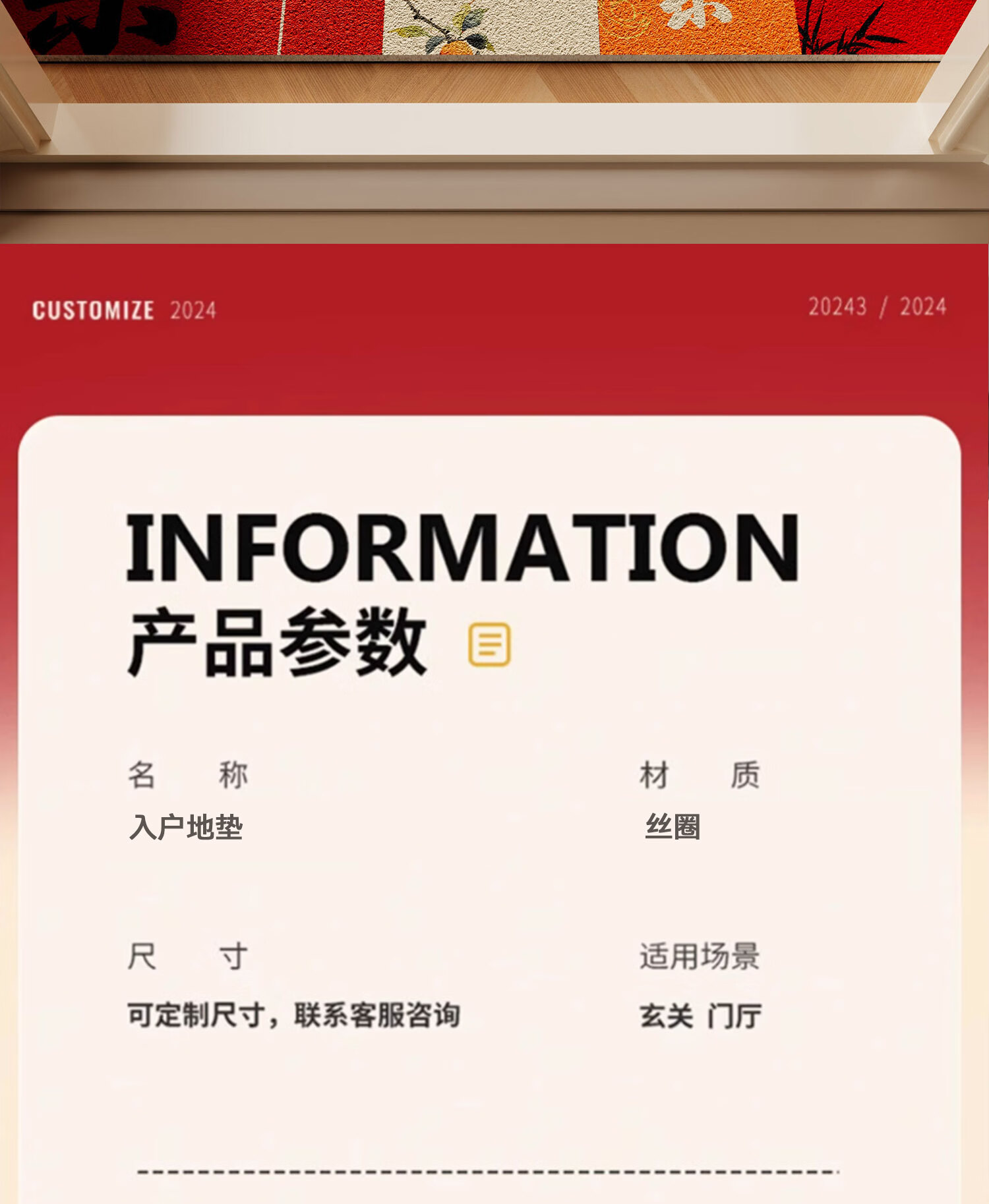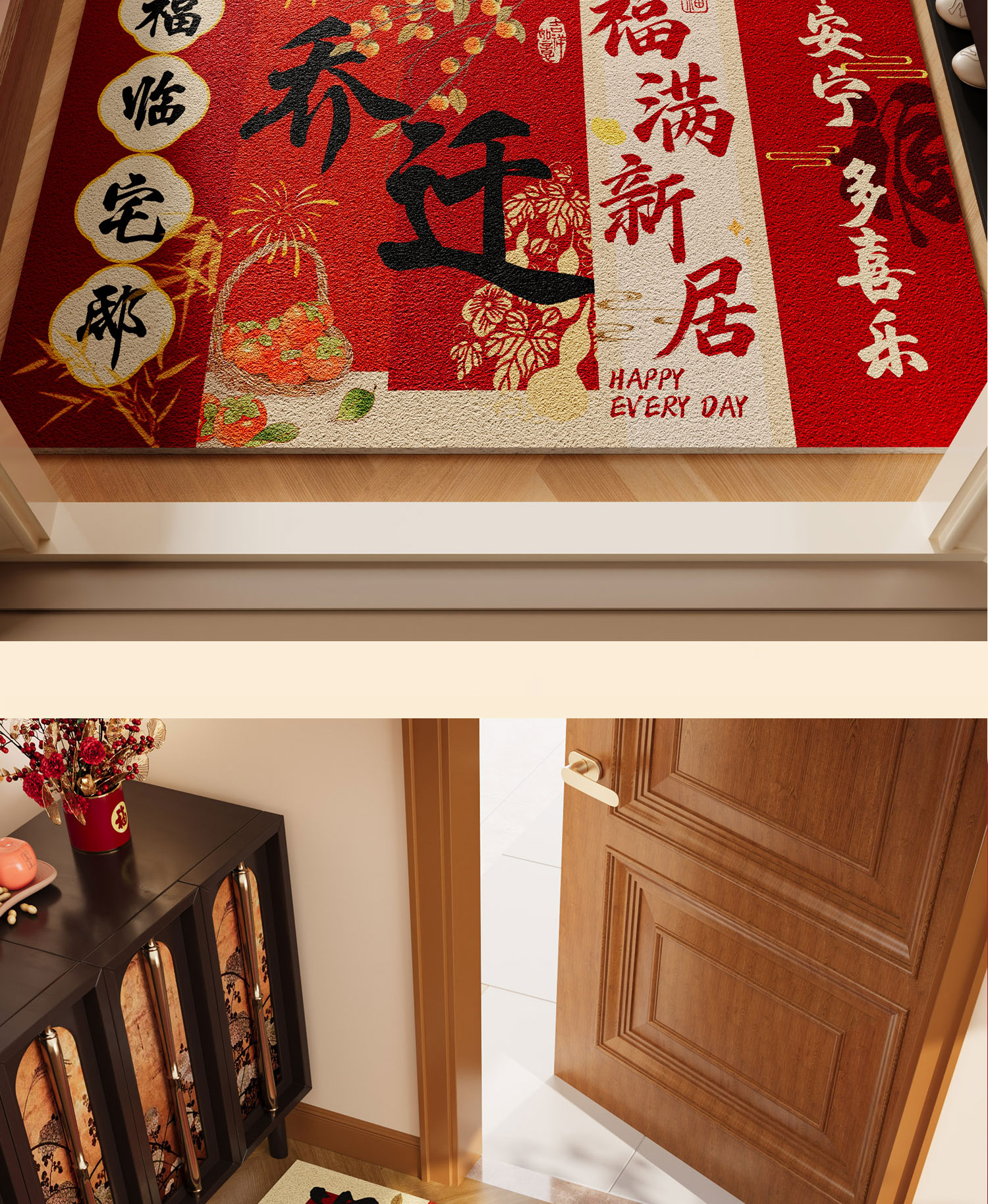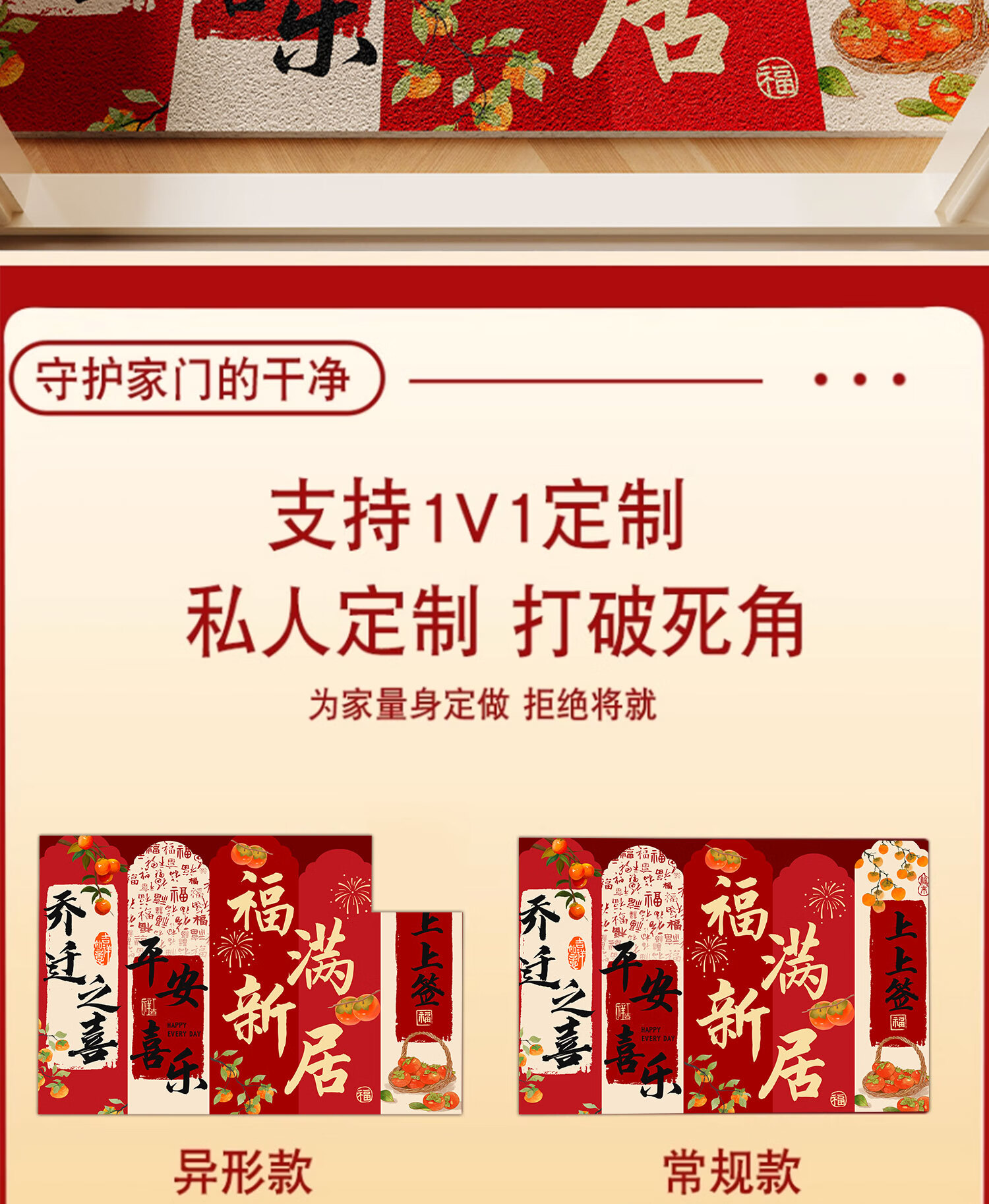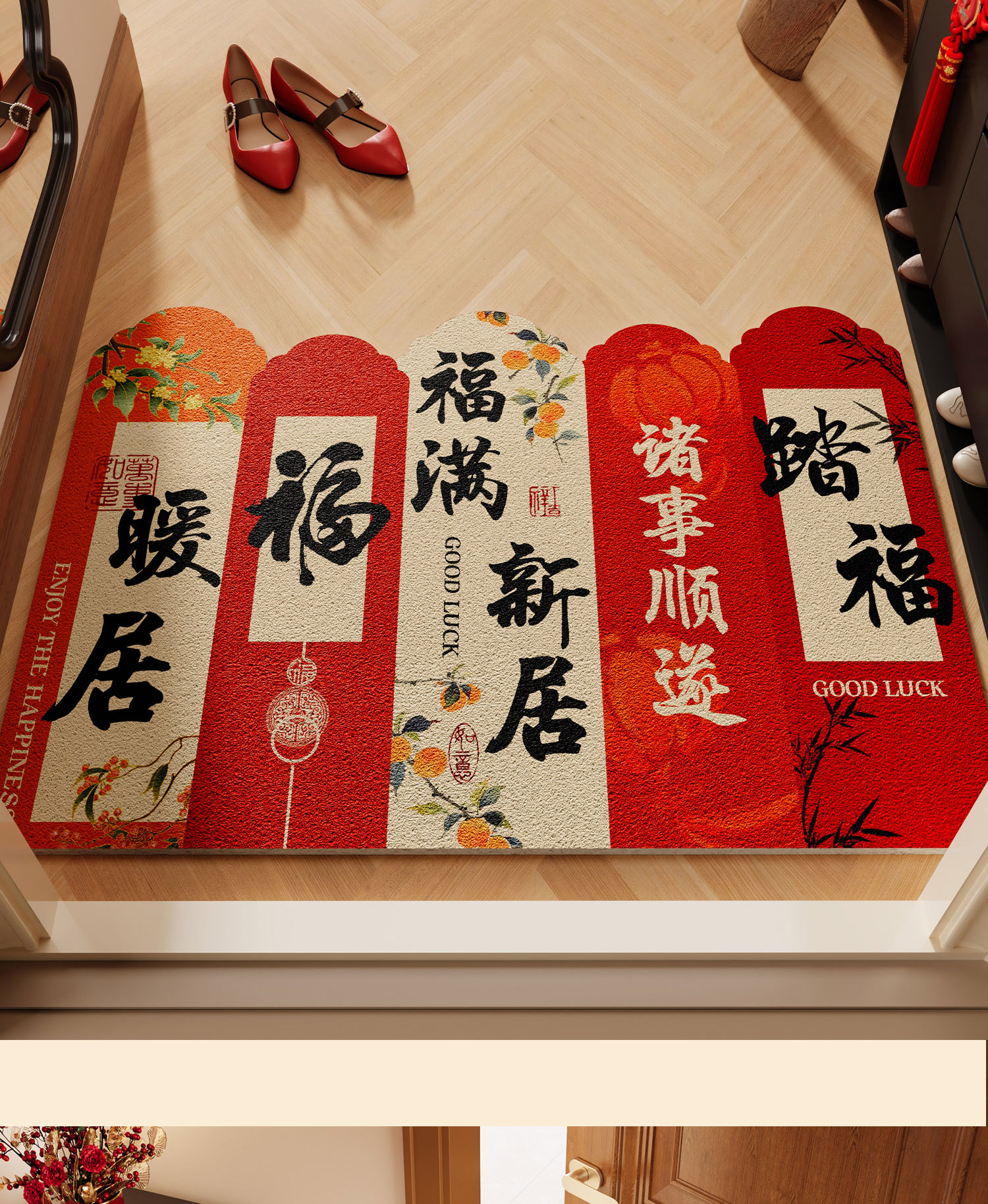 情更浓乔迁进宅入户门地垫暖居踏福红色丝圈地毯出入平安进门口玄关脚垫 M红满福04 40*60CM