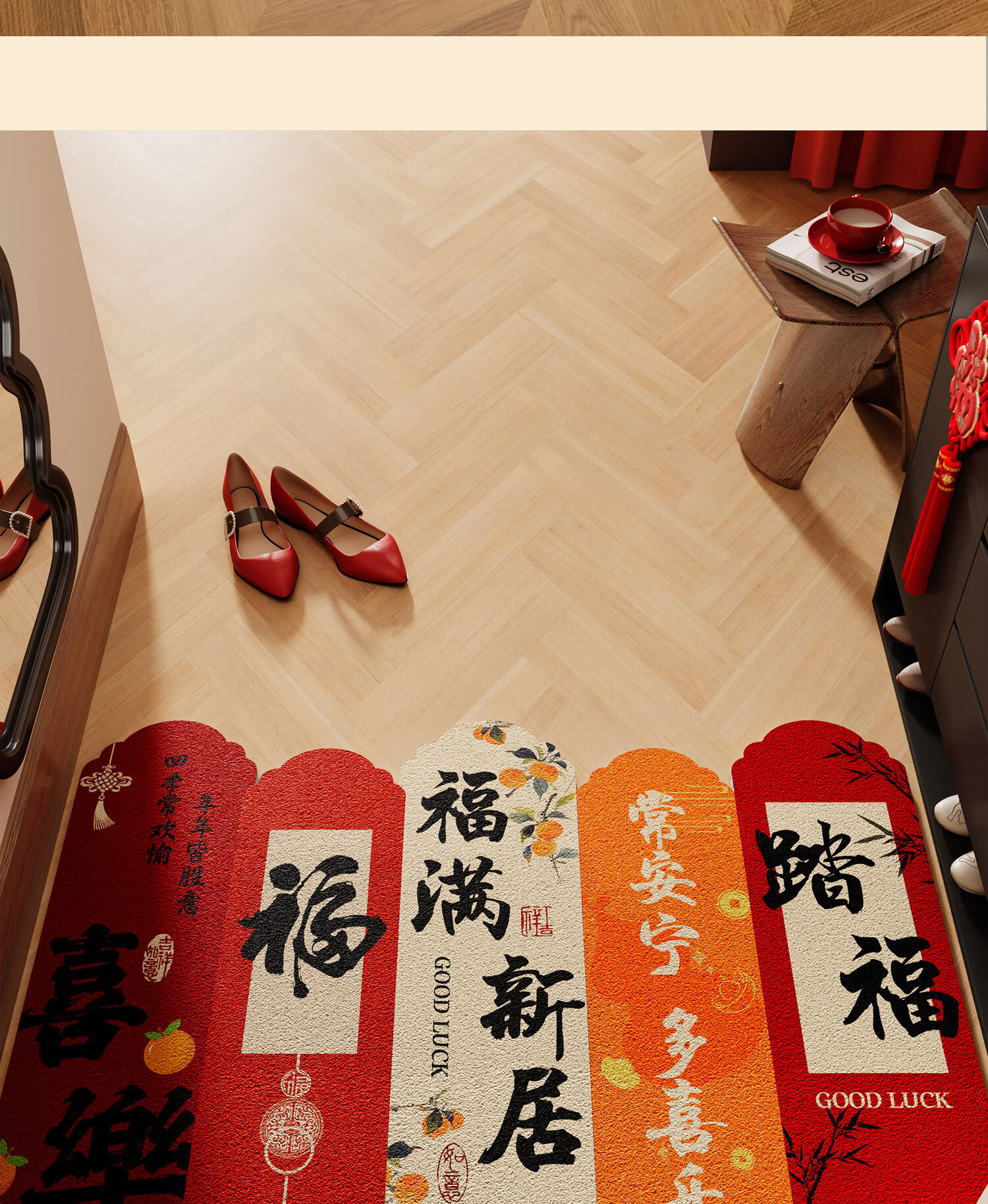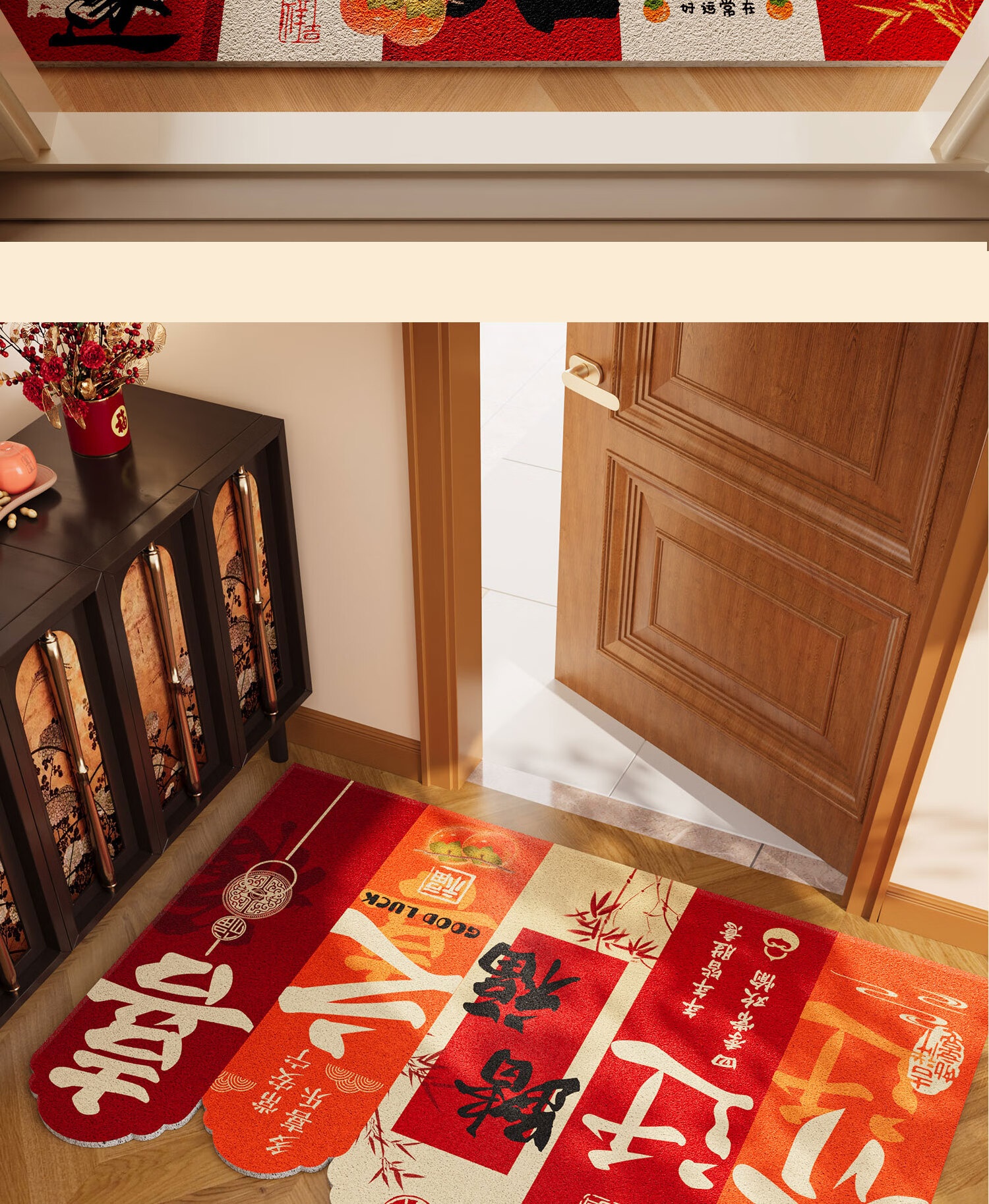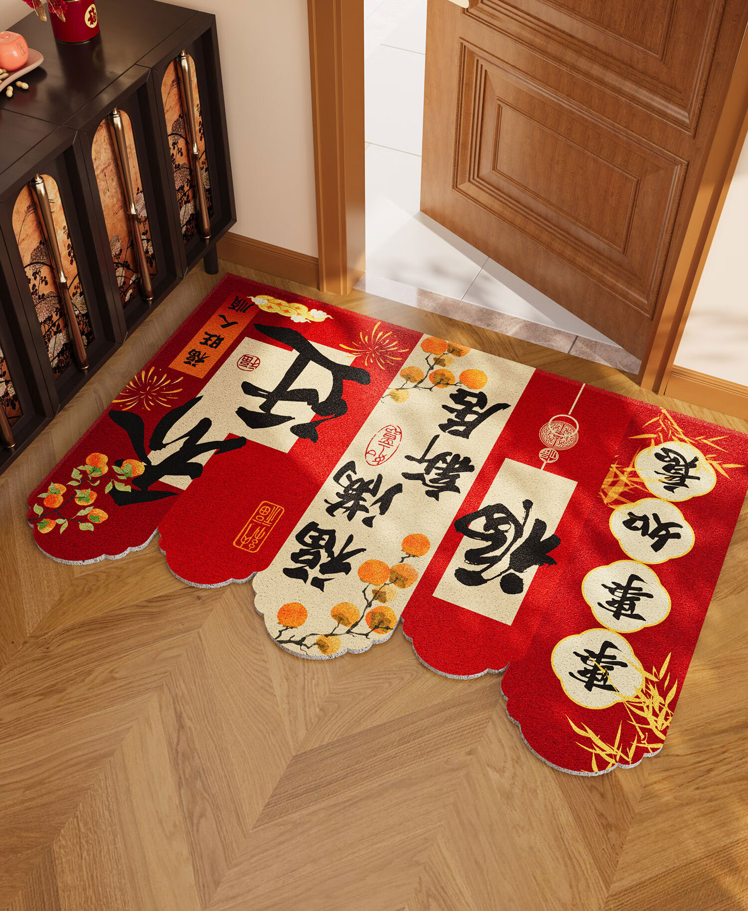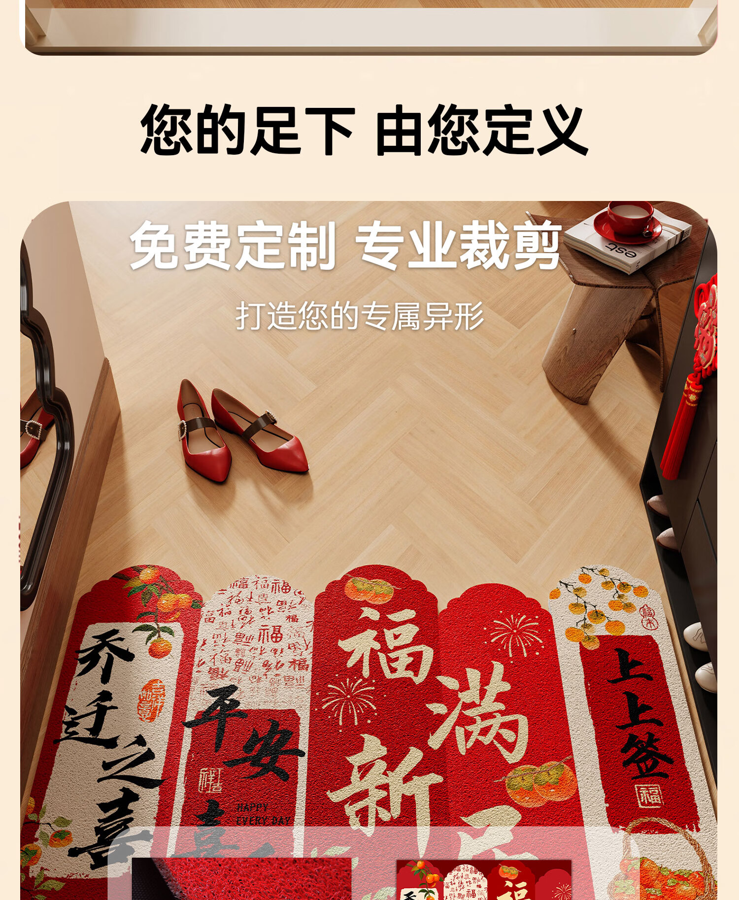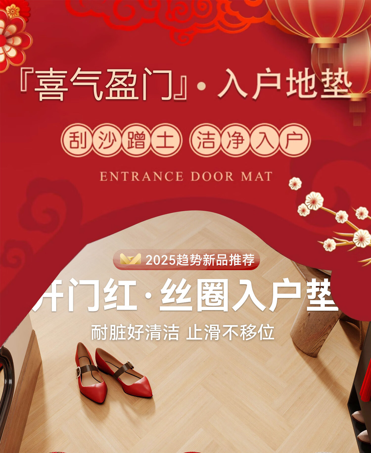 情更浓乔迁进宅入户门地垫暖居踏福红色丝圈地毯出入平安进门口玄关脚垫 M红满福04 40*60CM
