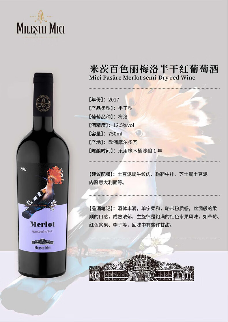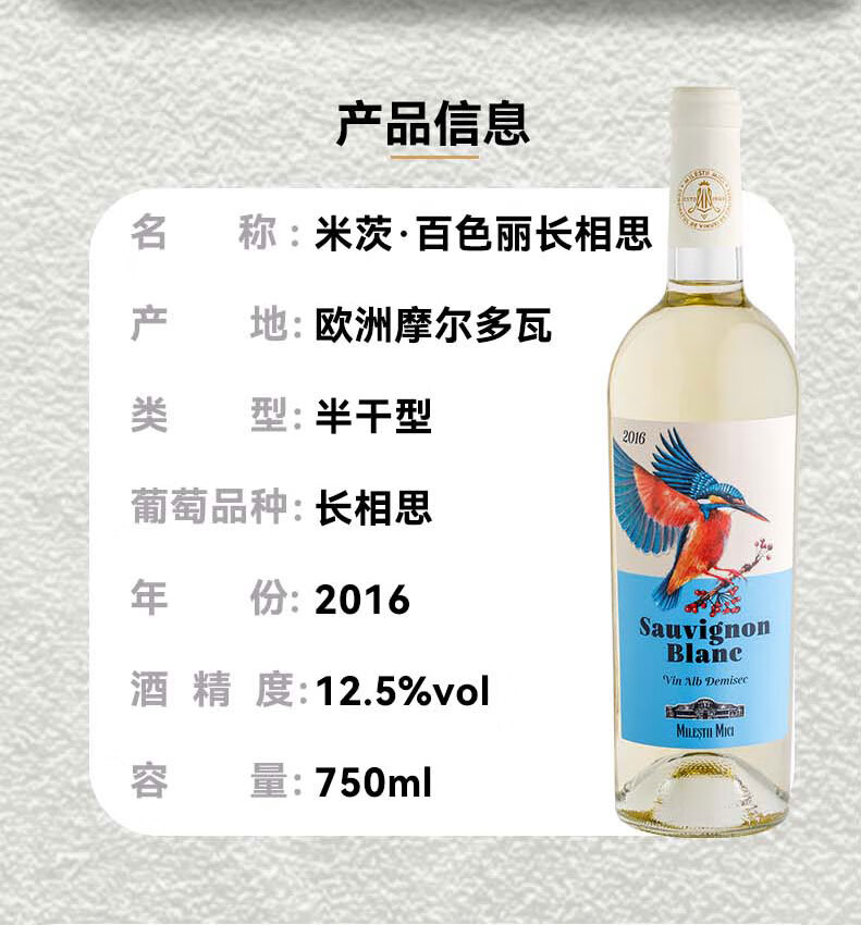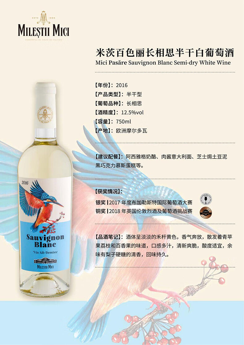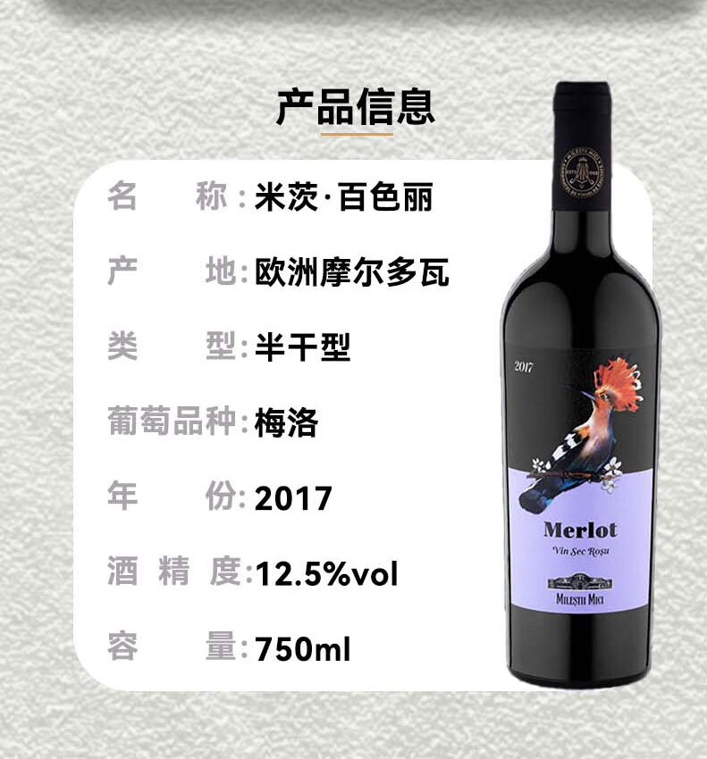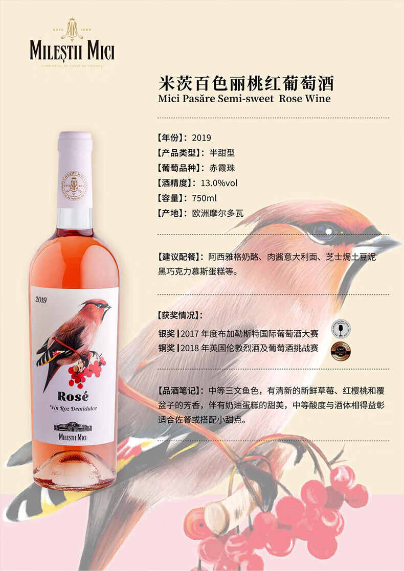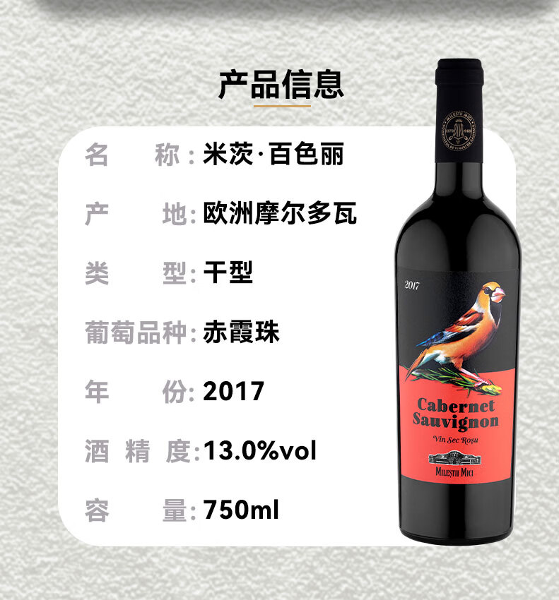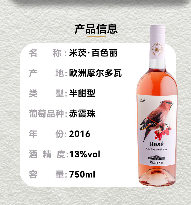 米茨百色丽系列 干红干白桃红甜红葡萄酒 摩尔多瓦国家馆原瓶原装进口 畅饮6支搭配购