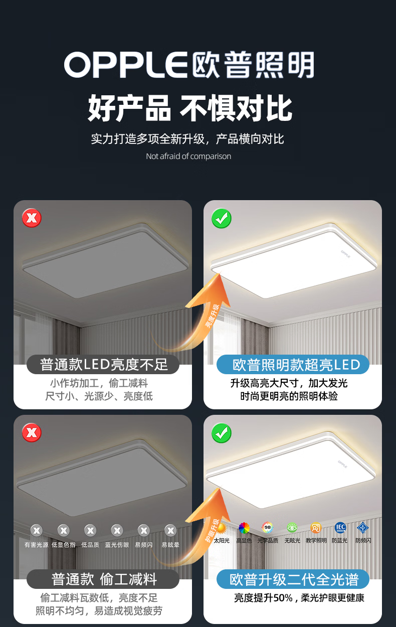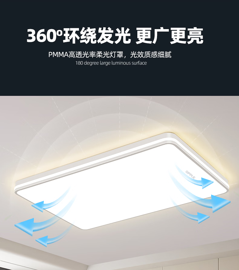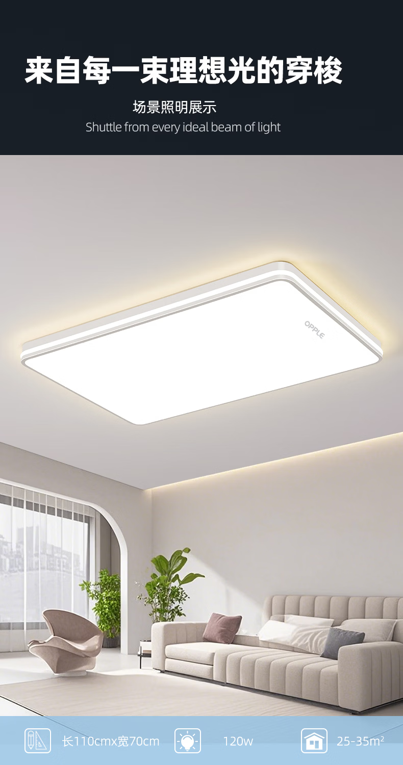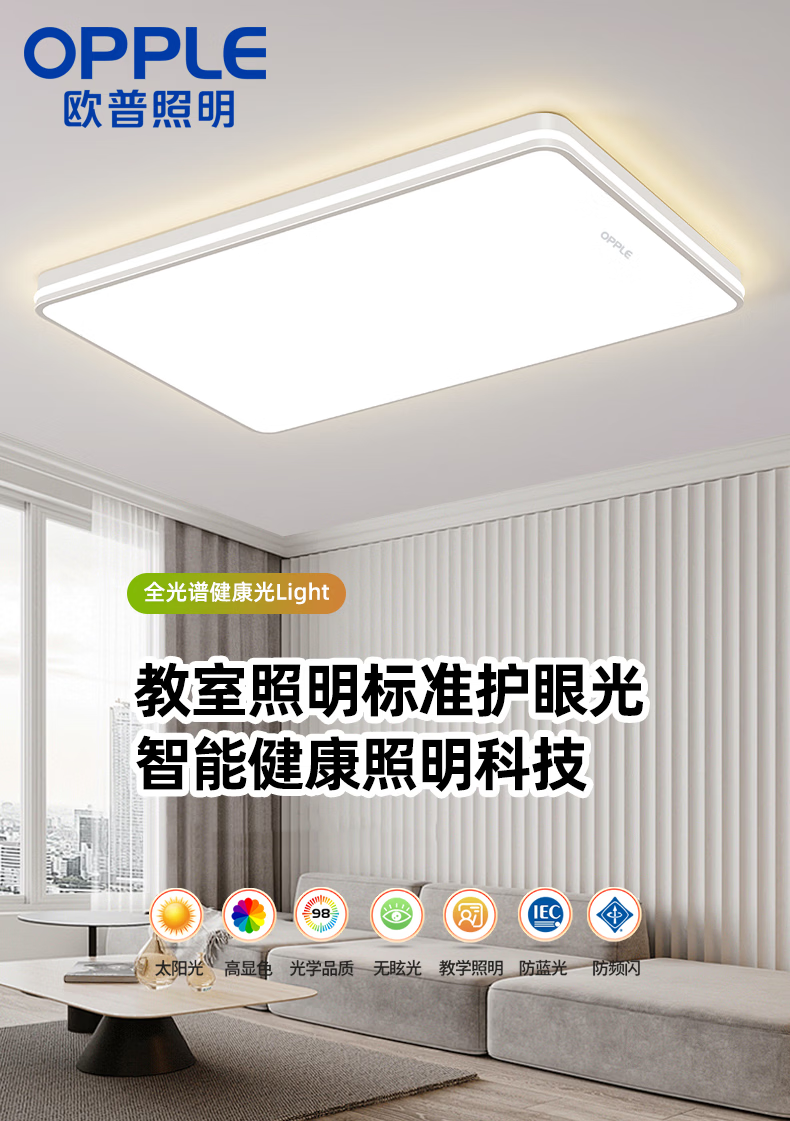 欧普照明(OPPLE)2026新款大厅客厅灯LED卧室吸顶灯厨房餐厅全屋灯具套餐主灯大灯 长110*70CM120瓦【包安装】三色变光