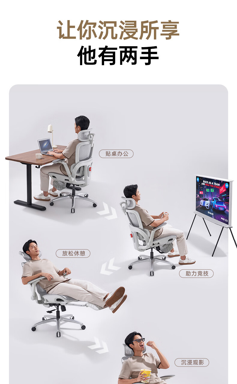 黑白调P1二代 人体工学椅电脑电竞椅子人工力学座椅办公椅 双背联动扶手