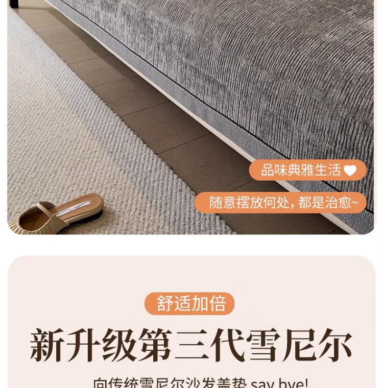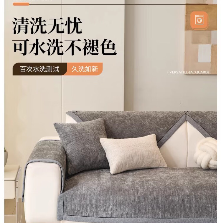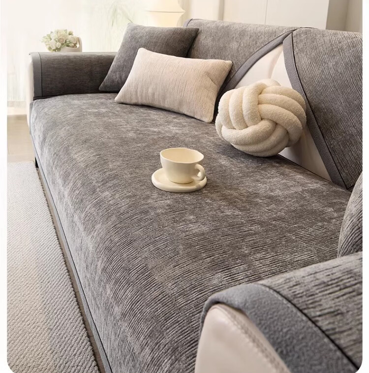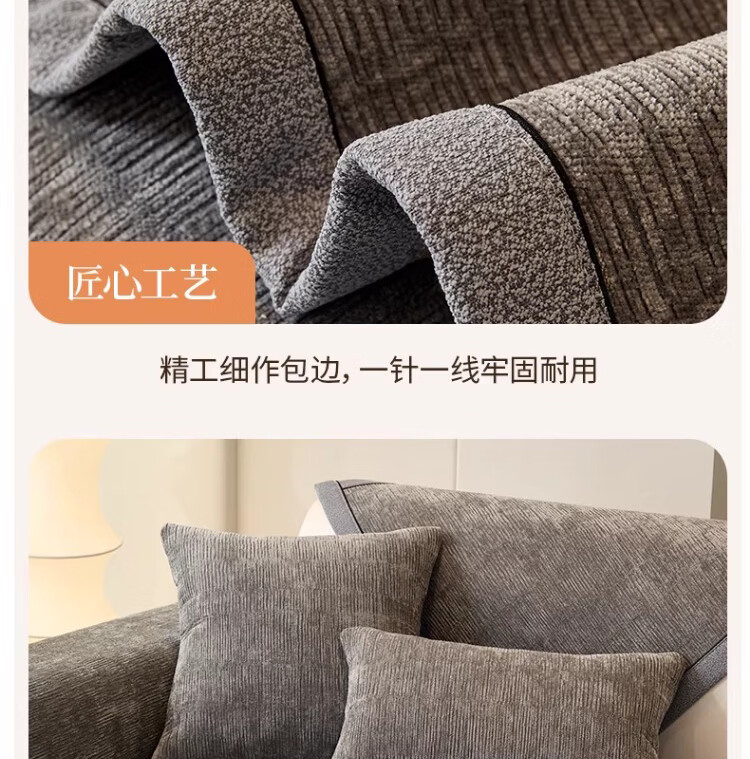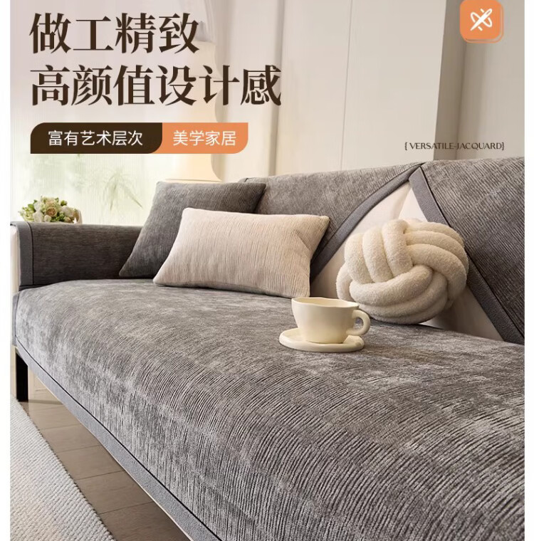无印良品沙发垫子高档轻奢防滑耐磨沙发坐垫沙发垫定制四季通用盖布巾 迎叶-深灰 (耐磨抗皱 防滑防猫抓 ) 70*210cm (三人位)