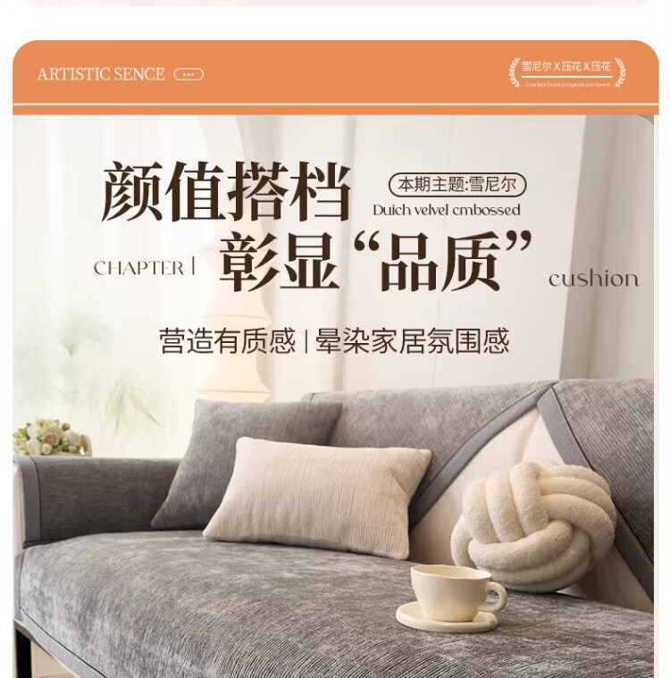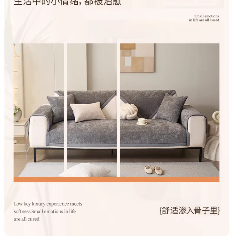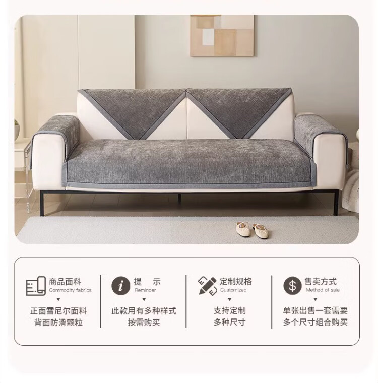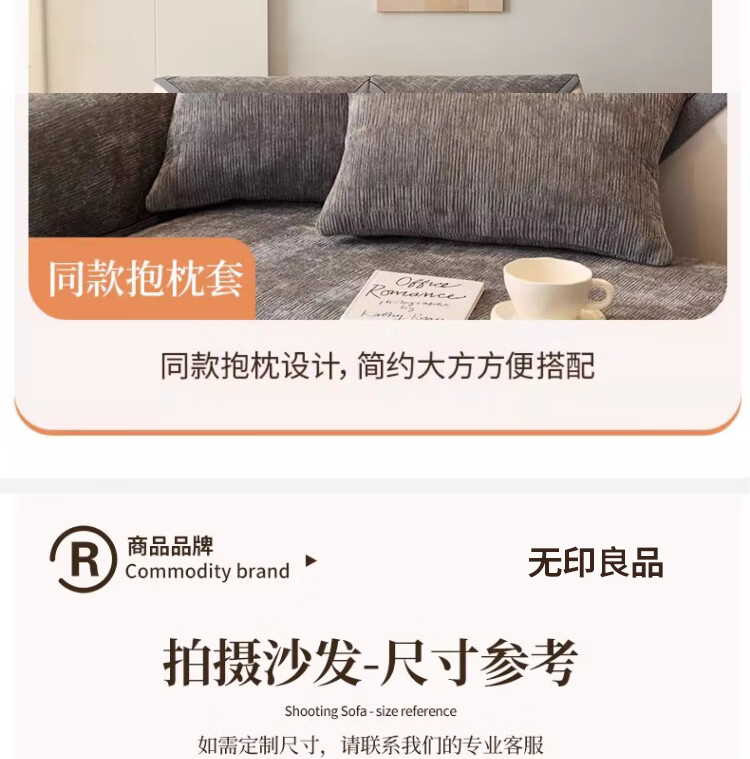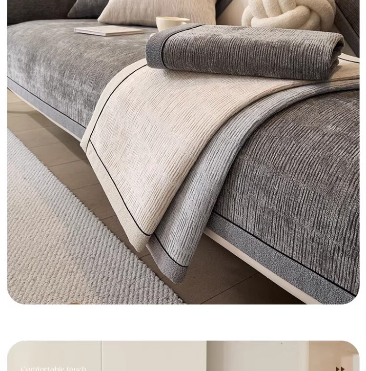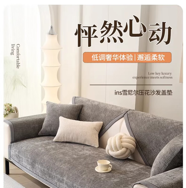 无印良品沙发垫子高档轻奢防滑耐磨沙发坐垫沙发垫定制四季通用盖布巾 迎叶-深灰 (耐磨抗皱 防滑防猫抓 ) 70*210cm (三人位)