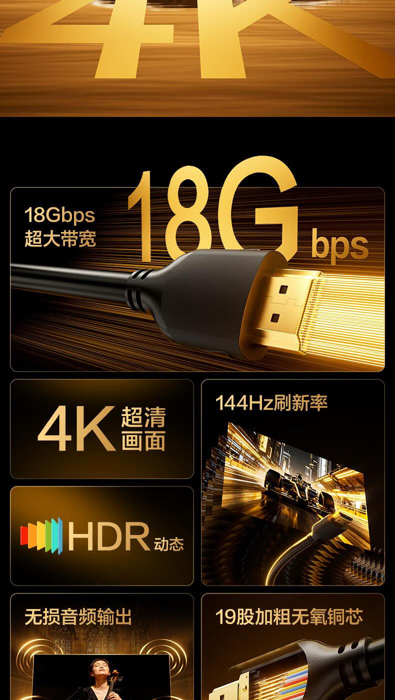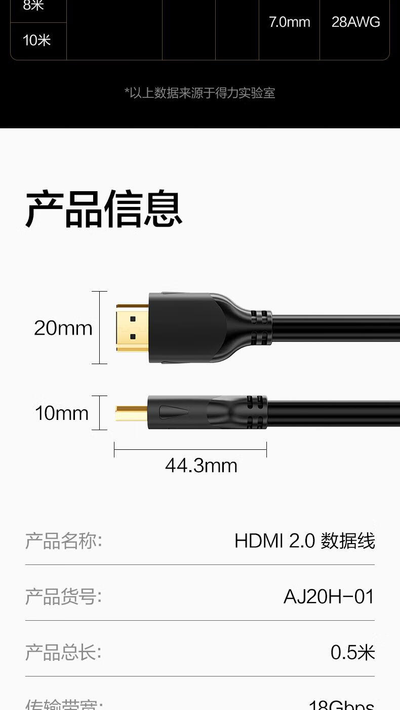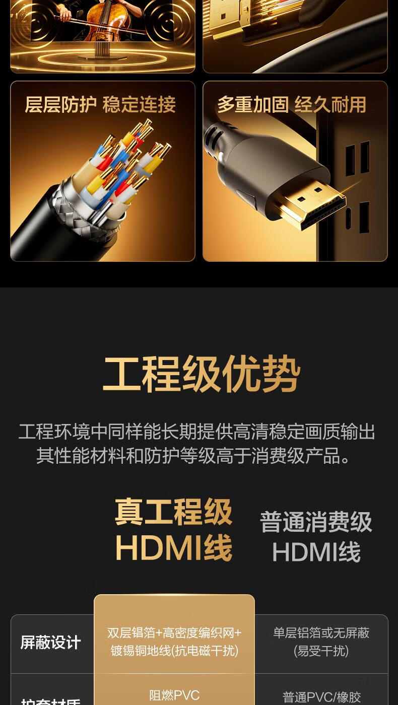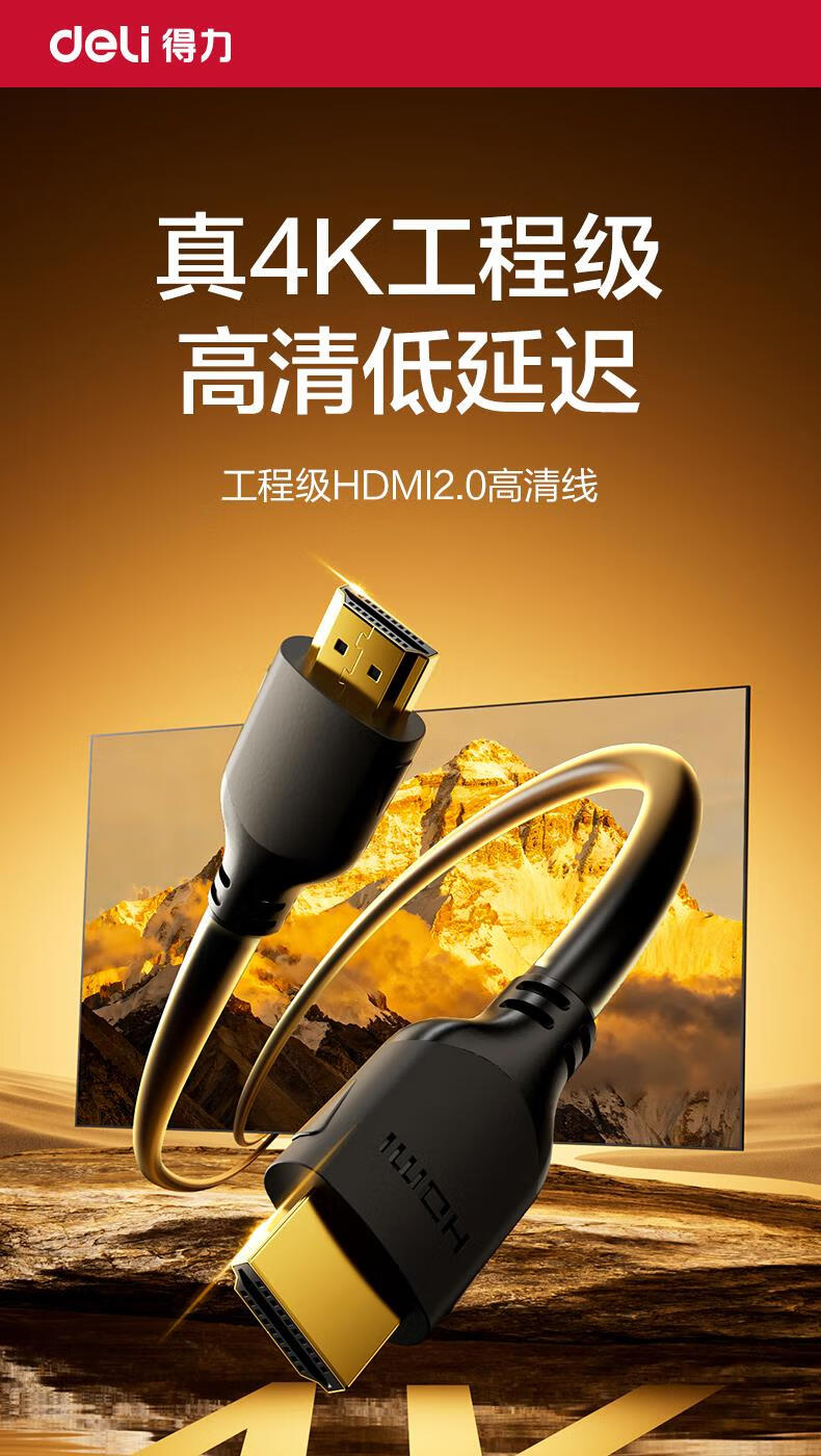 得力(deli)HDMI线2.0版 4K数字高清线0.5米视频线工程级 笔记本电脑机顶盒连接电视投影仪显示器数据 4K经典款【家装/工程】 2米