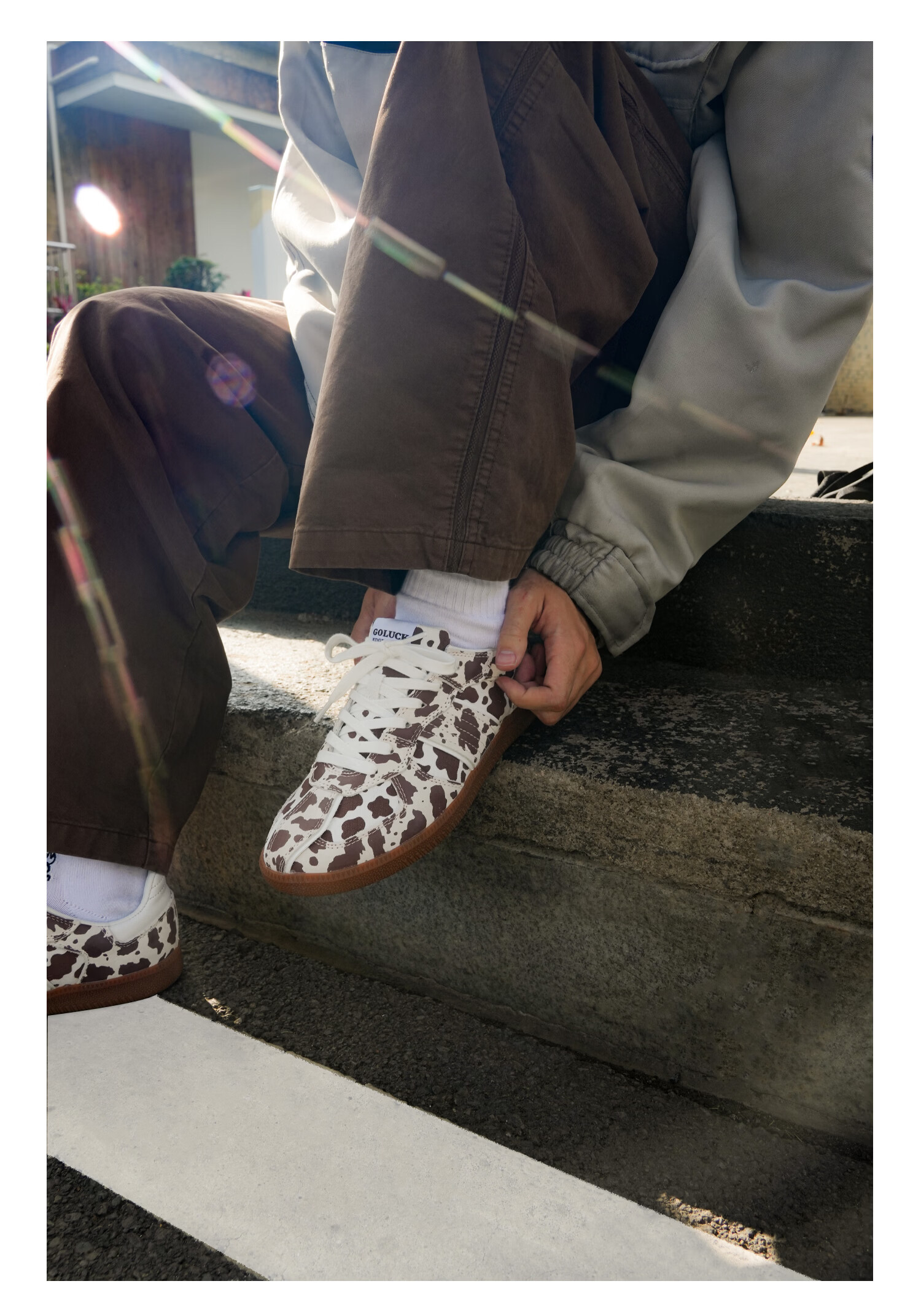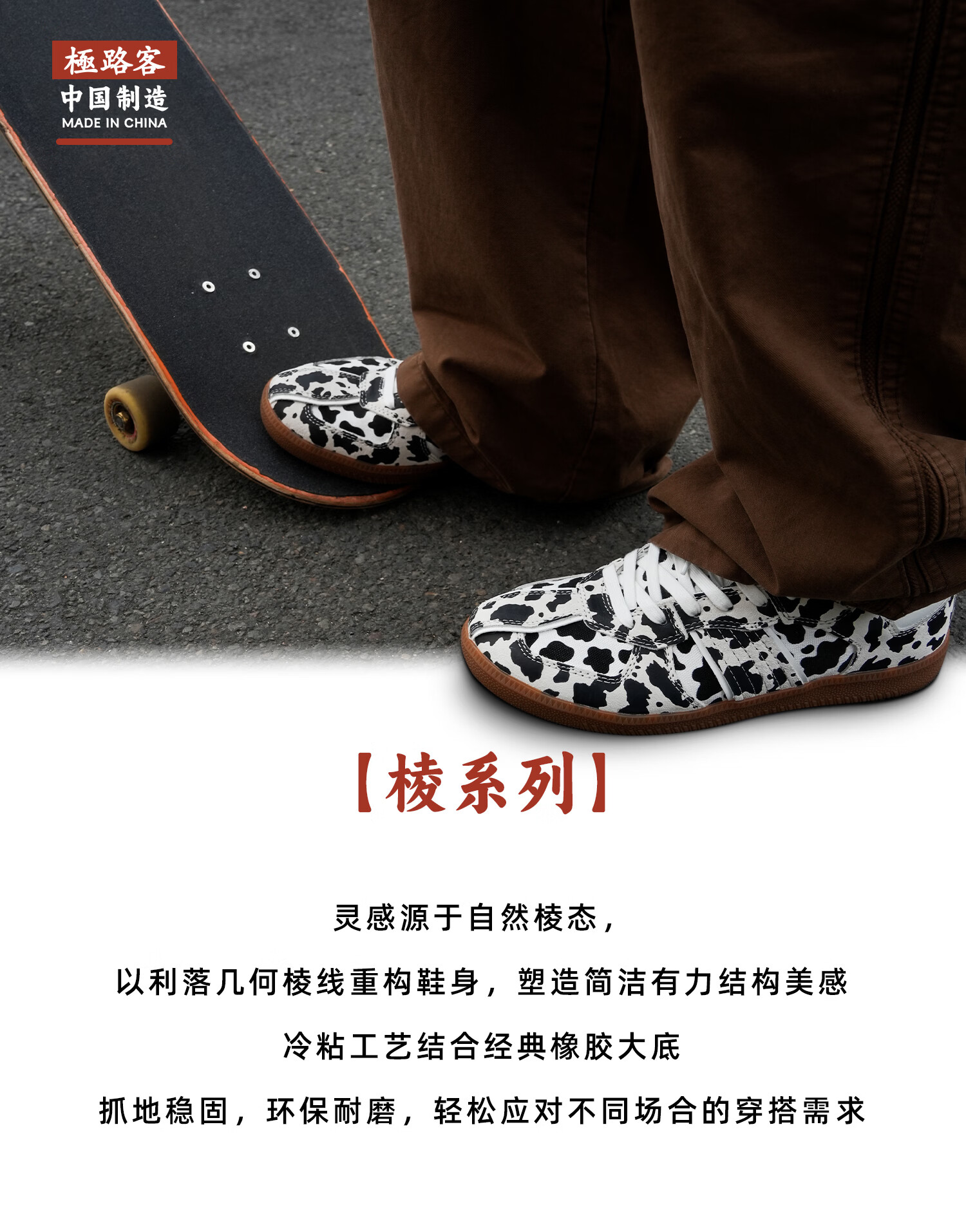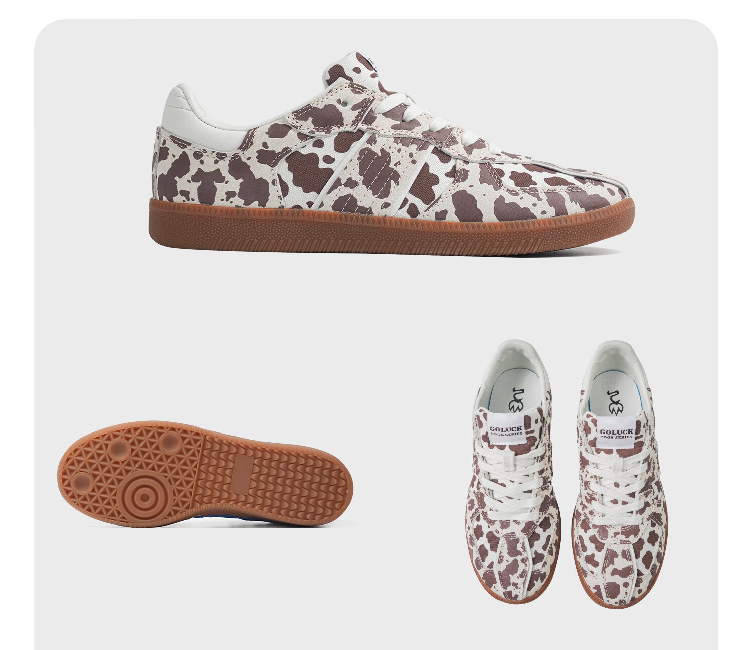 极路客2026春季新款奶牛纹德训鞋复古运动板鞋减震专业滑板鞋 焦糖奶牛 45