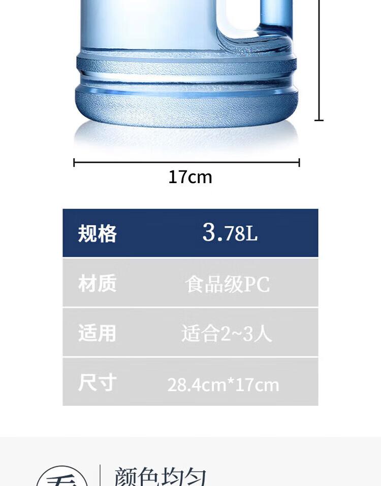 拜杰纯净水桶 食品级PC矿泉水桶装水桶 矿泉水桶饮用水饮水机手提户外桶 3.78L