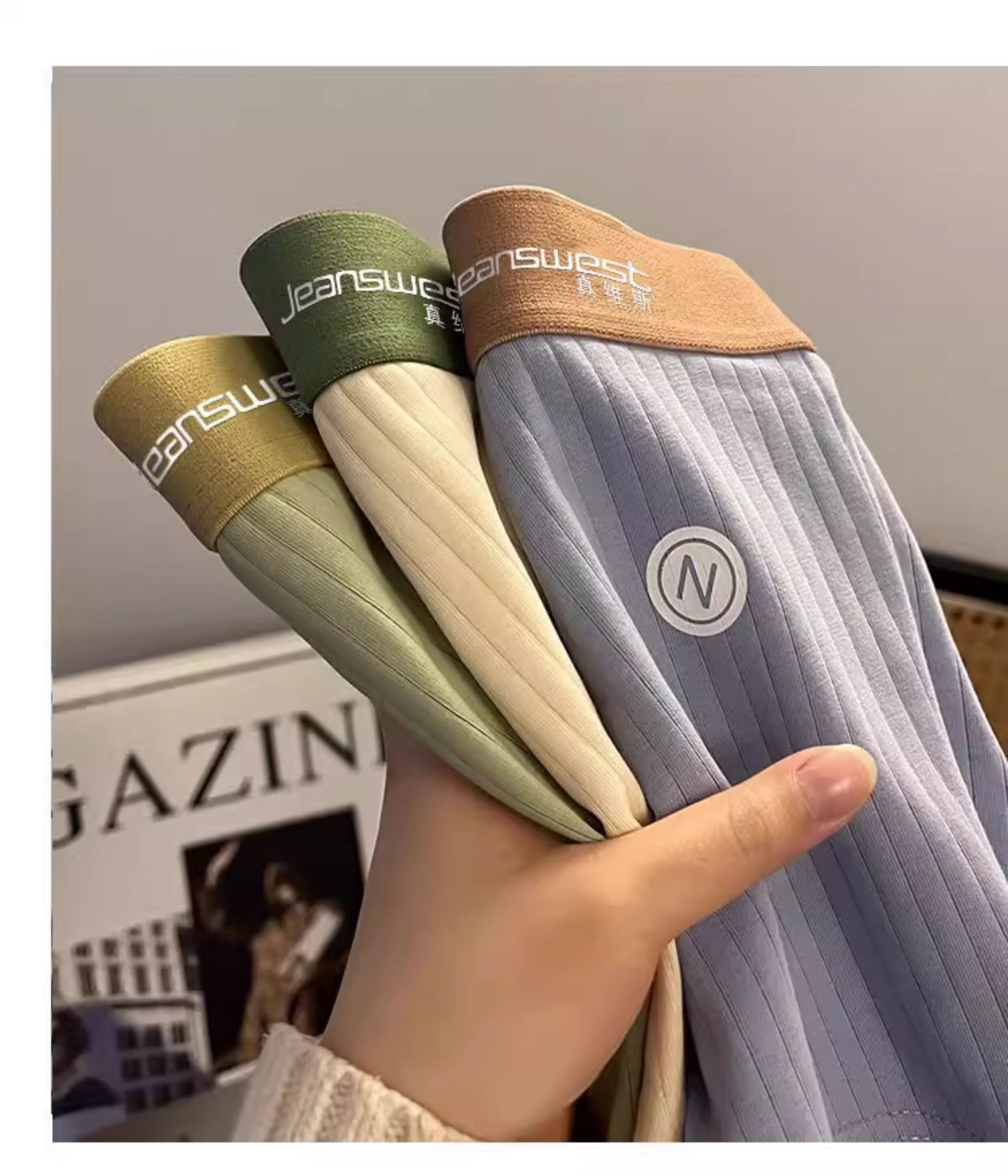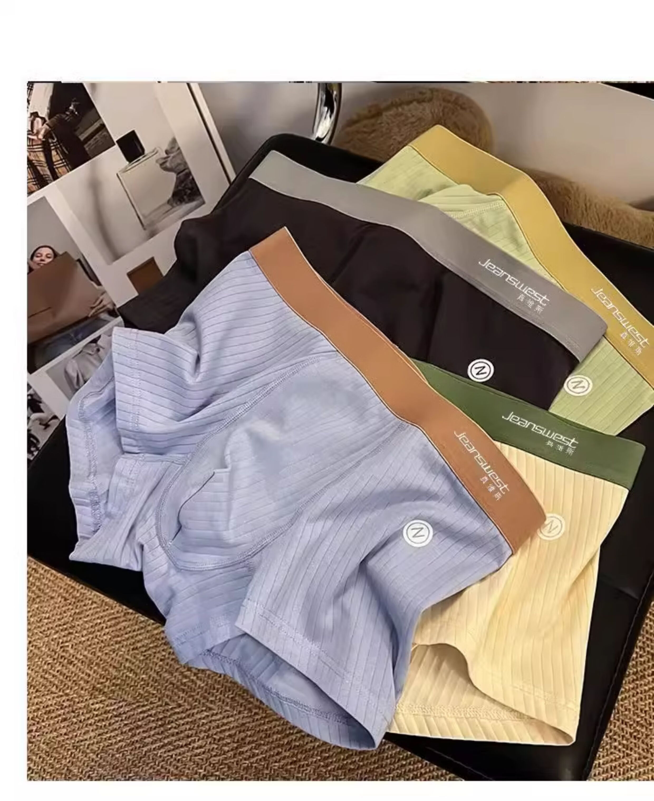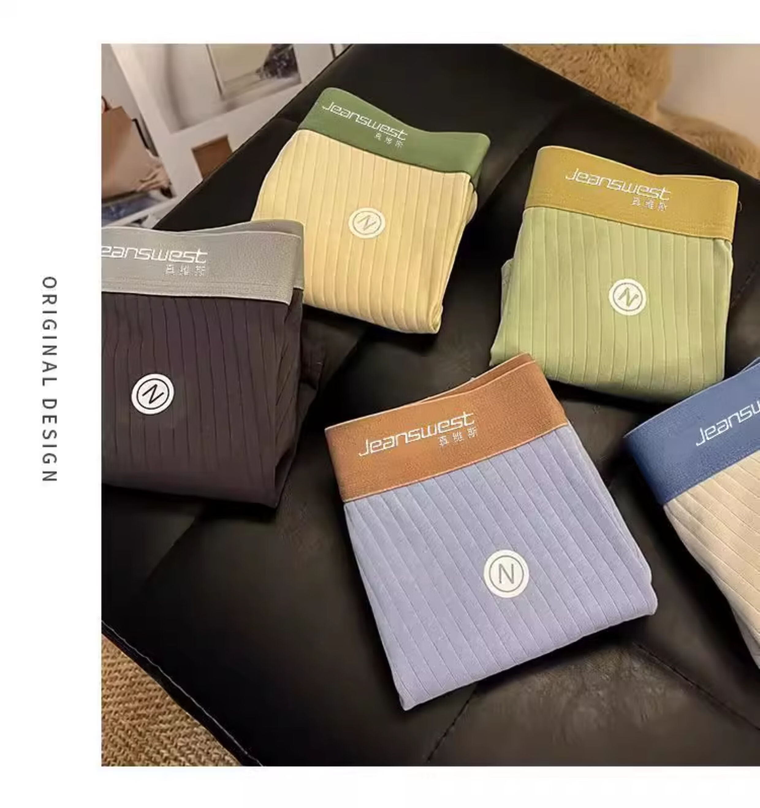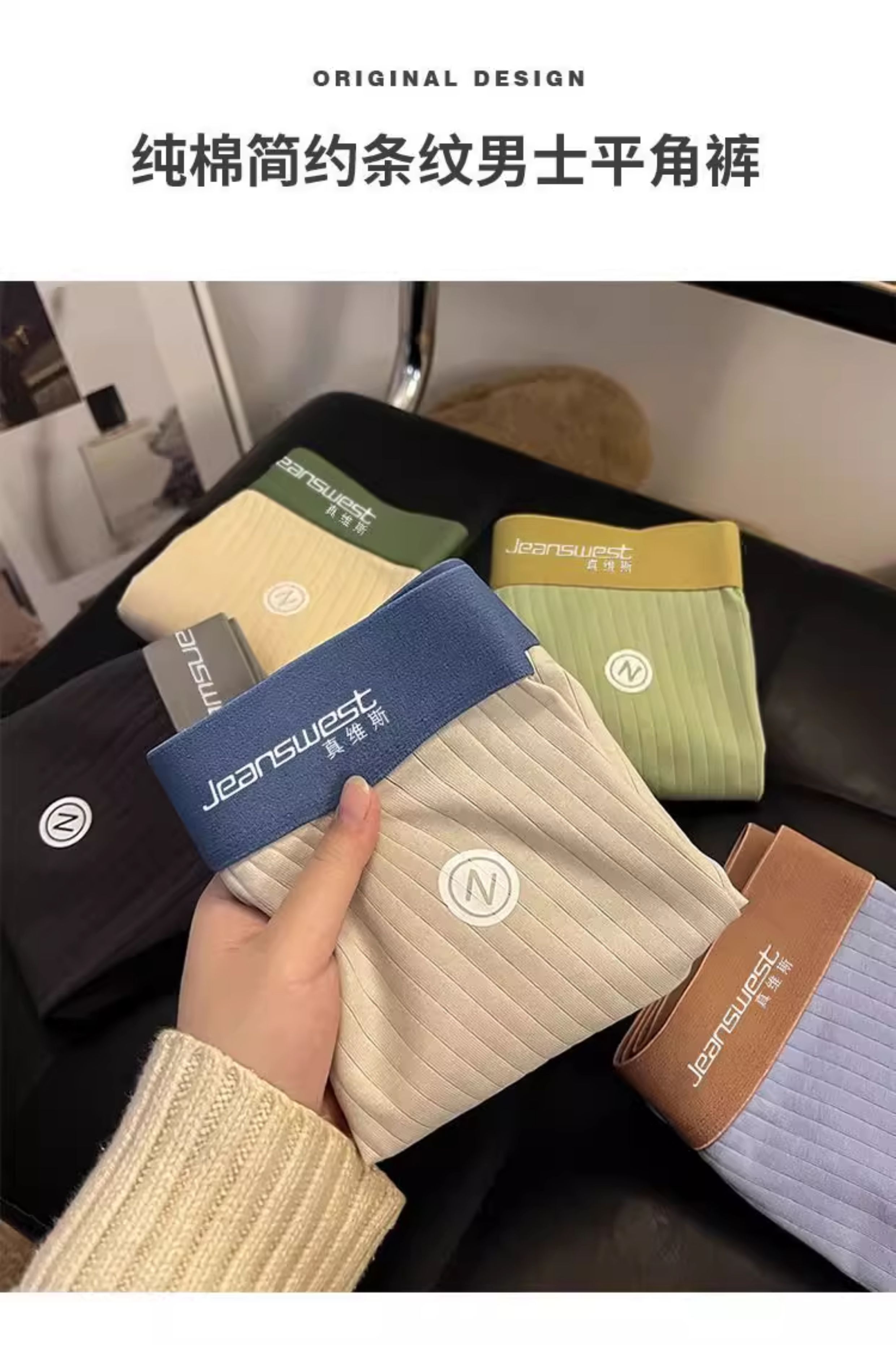 真维斯(Jeanswest)男士内裤男生纯棉四角底裤青少年亲肤透气宽松大码平角短裤 浅灰+奶白+绿色+蓝色 XL 100-120斤