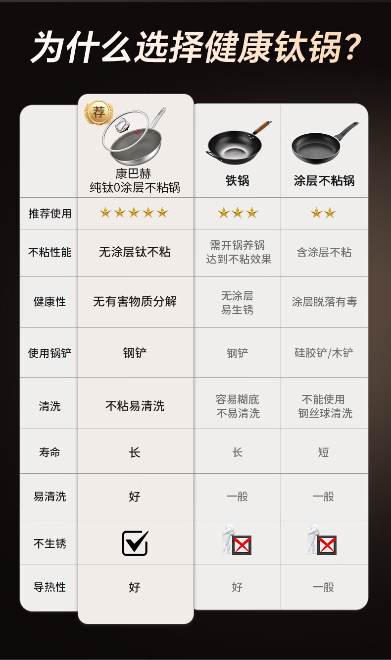 康巴赫纯钛内胆电饭煲家用不粘煮粥锅煮粥锅电饭锅多功能电锅电器煮粥锅套锅煎锅炒锅套装 Mate 4L +纯钛0涂层炒锅+蒸笼+铲子