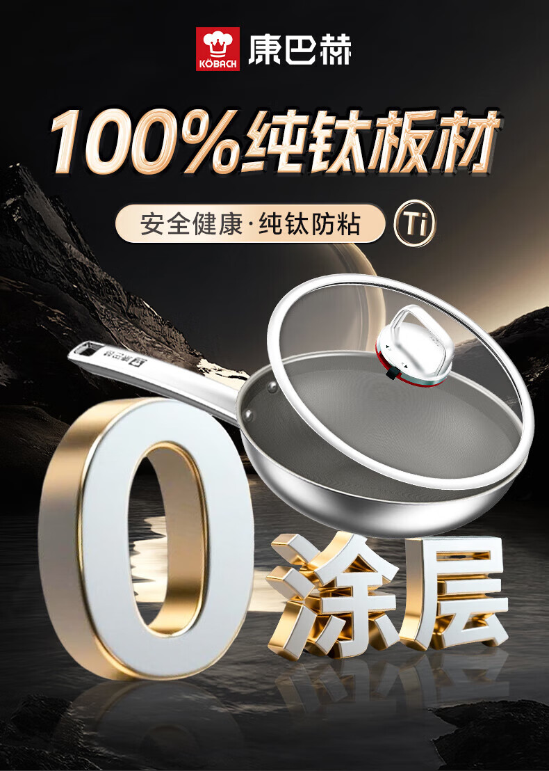 康巴赫纯钛电压力锅高压锅家用电饭煲智能料理锅家用免排气大容量电饭锅0氟涂层4-5L仿生不粘炒锅 钛金色 5L 纯钛高压料理锅+仿生铁锅