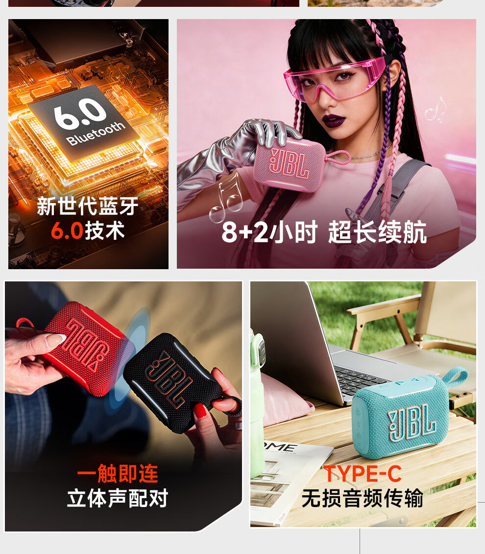 JBL GO5 音乐金砖五代 蓝牙音箱 户外便携音箱 氛围灯音箱 GO4升级款音响 开学礼物小音箱 景泰蓝