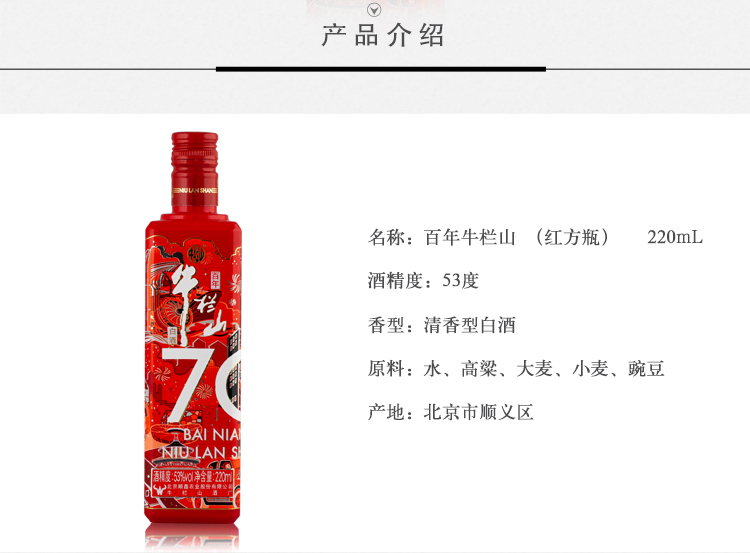 牛栏山 白酒 清香型 53度百年牛栏山(70)系列 220ml 单瓶装