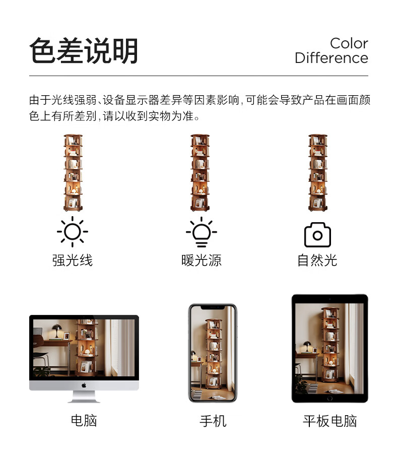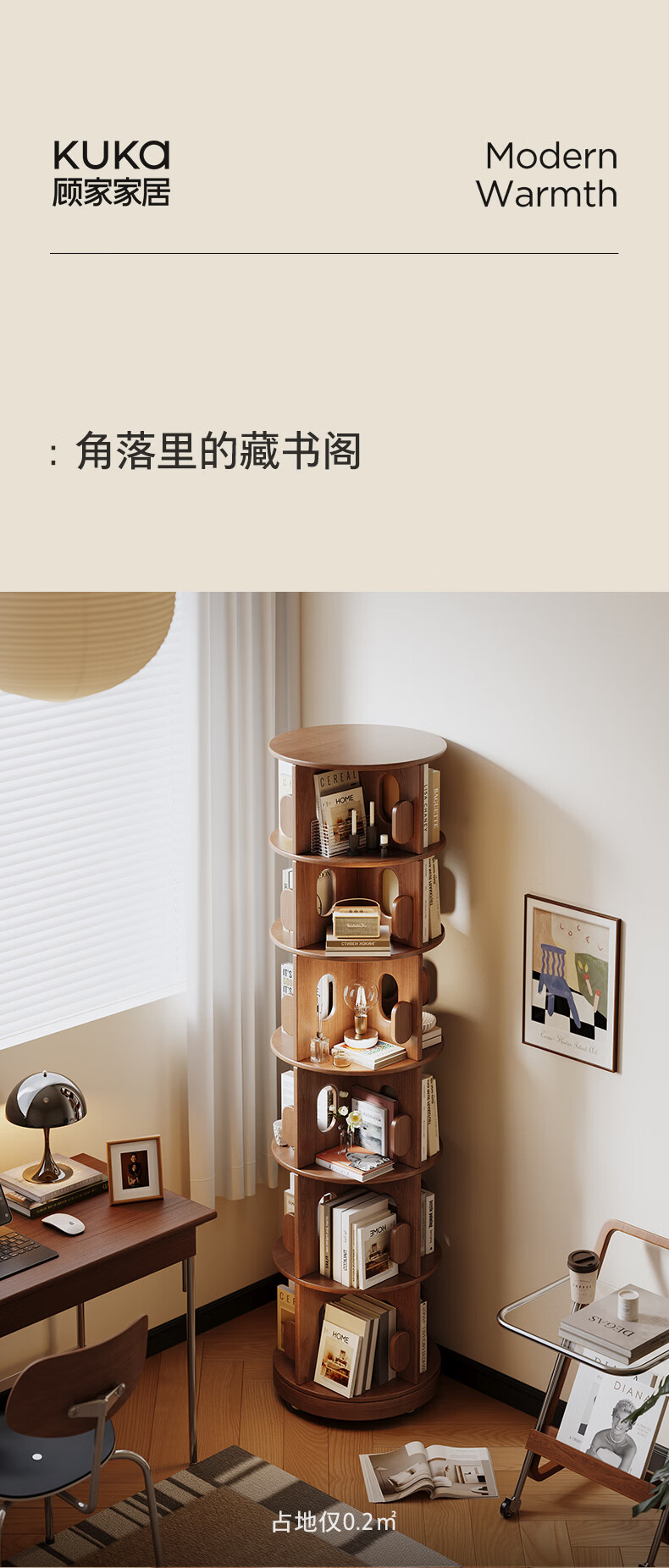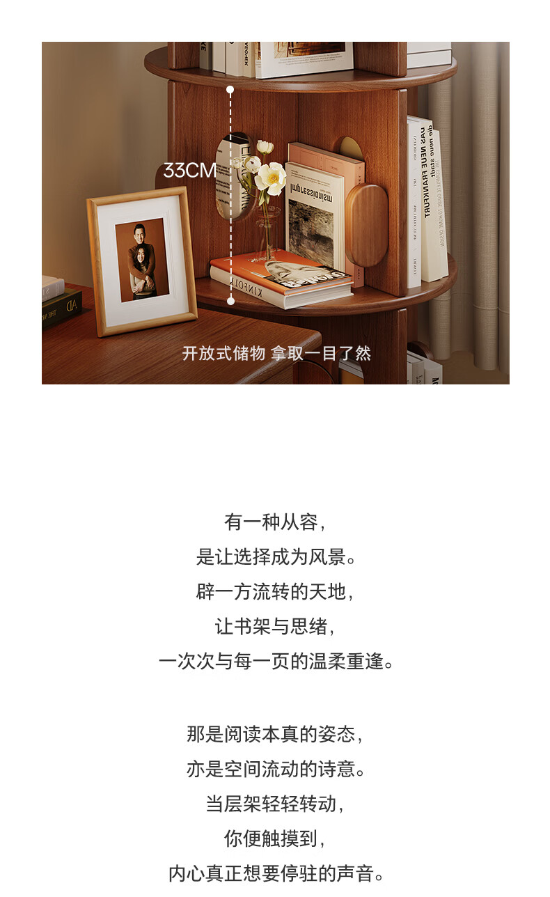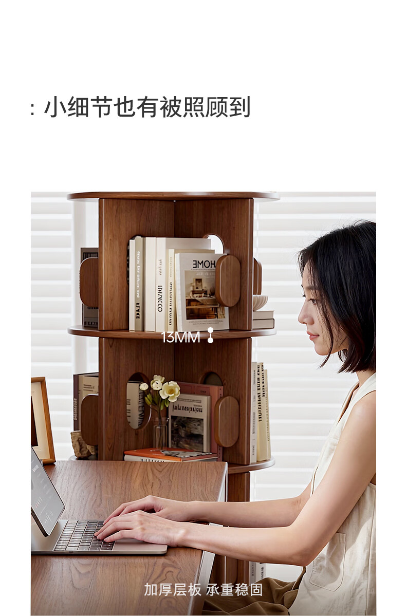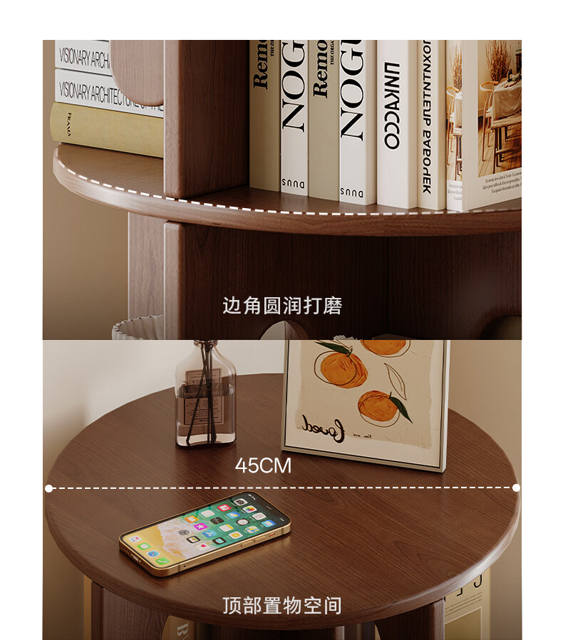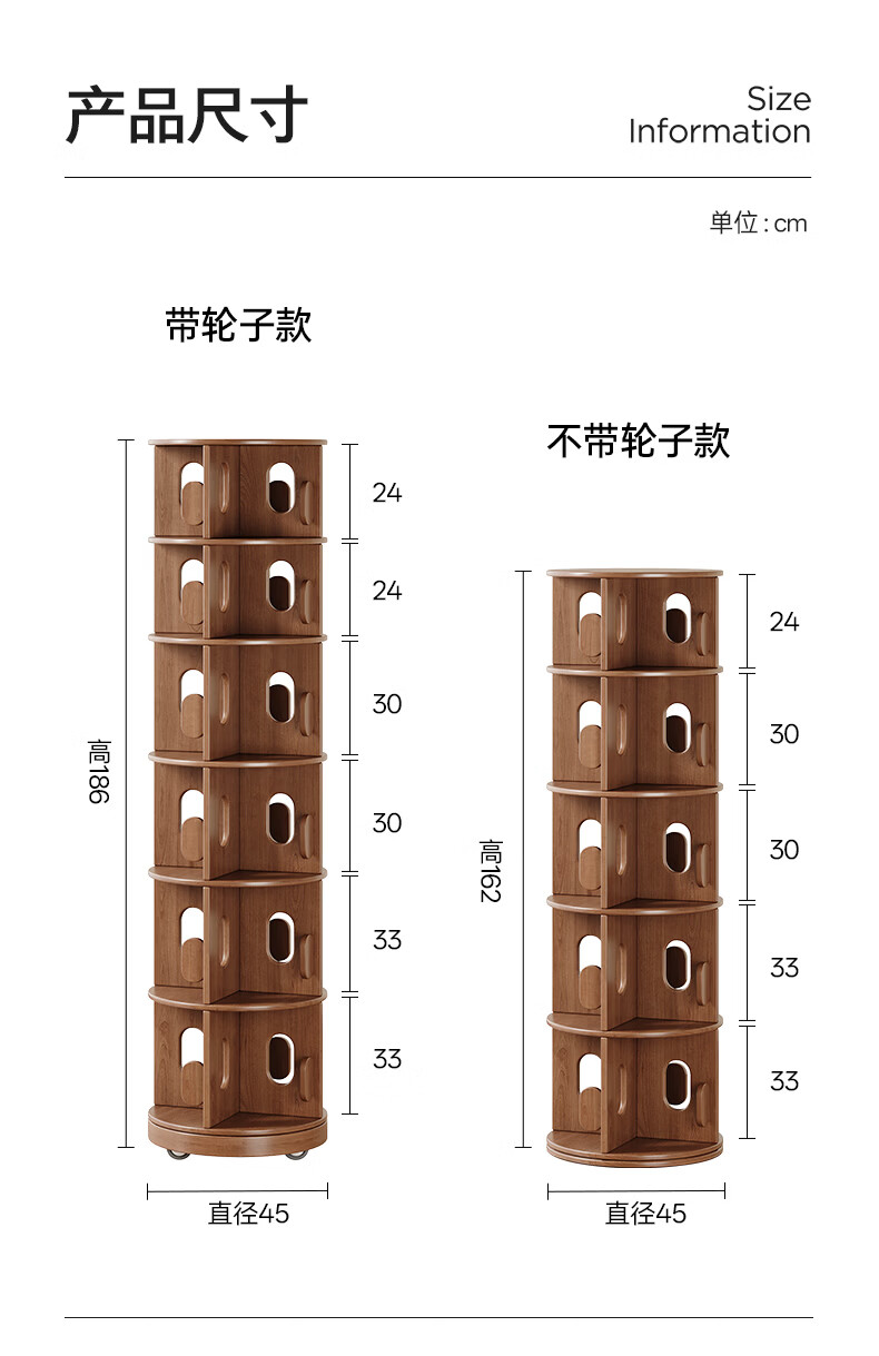 顾家家居实木旋转书架360度书柜置物架落地一体靠墙窄柜子可移动储物柜 【泰国进口FAS级橡胶木】六层胡桃色45*186C 【顾家全托管安心服务-免费送装】