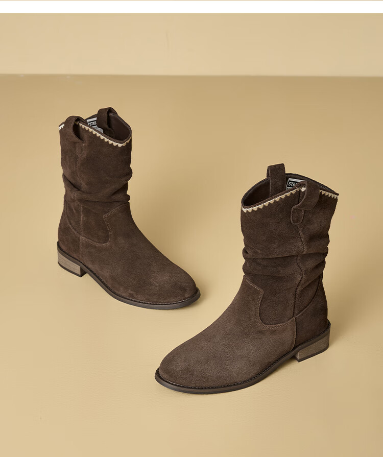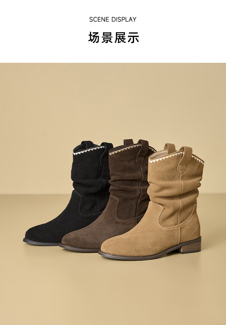 星期六(St&Sat)勃肯短靴女2025新款秋季复古棕色美拉德靴子西部牛仔堆堆靴 卡其色 35 225
