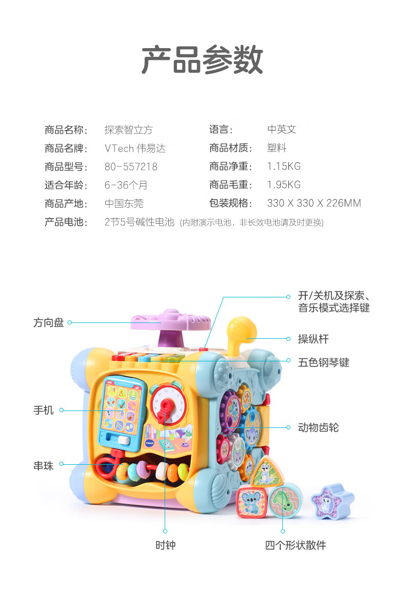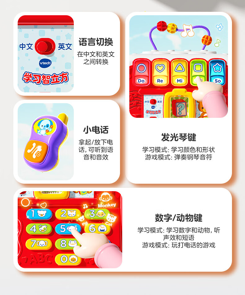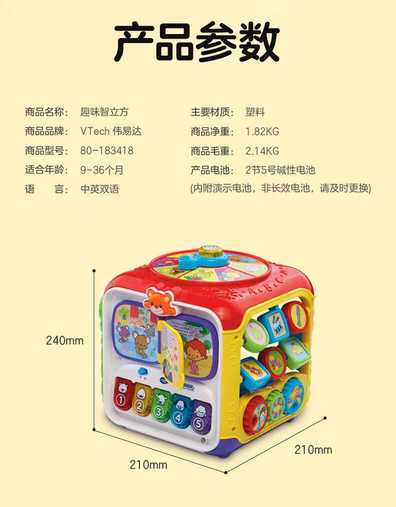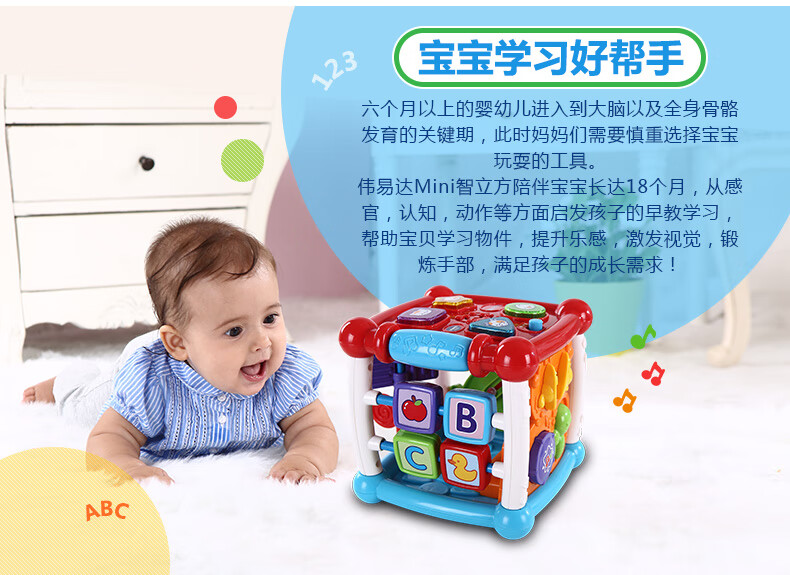 伟易达(Vtech)婴儿玩具智立方早教盒子游戏配对六面体宝宝男孩女孩儿童新年礼物 趣味智立方【9-36M】