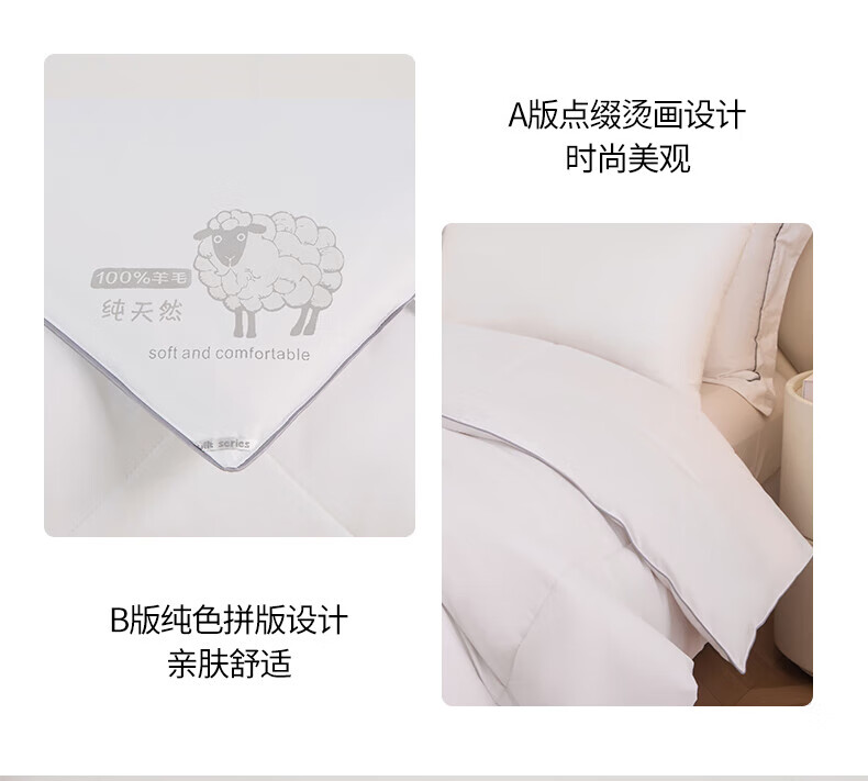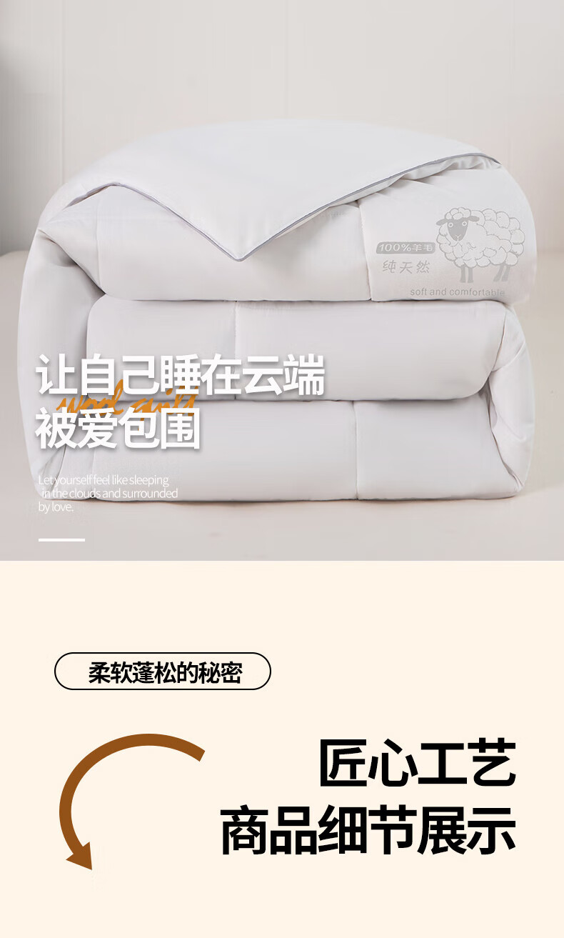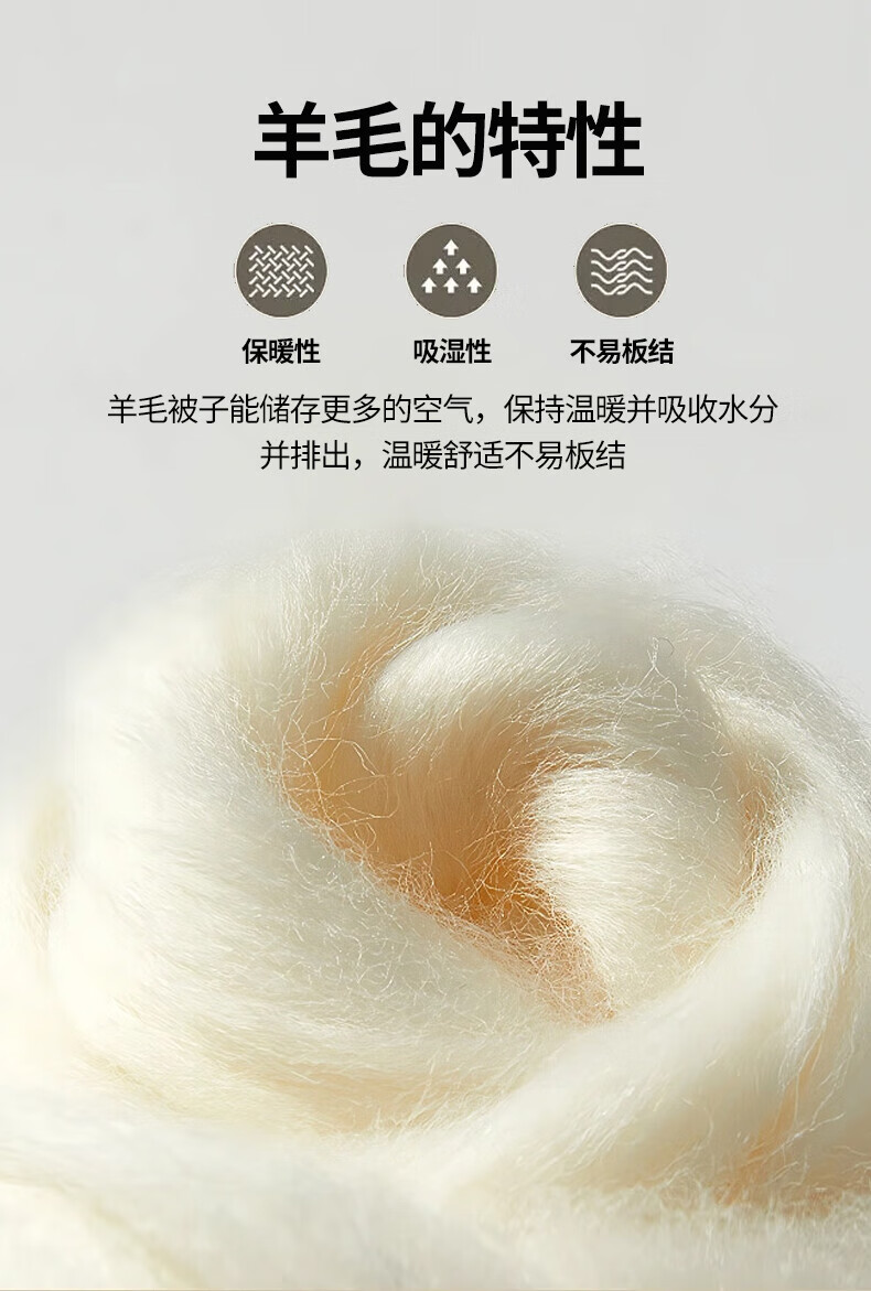 恒源祥澳洲羊毛被春秋被冬被芯加厚保暖羊毛单人被子10斤厚棉被褥 白色 150x200cm【4斤夏被】