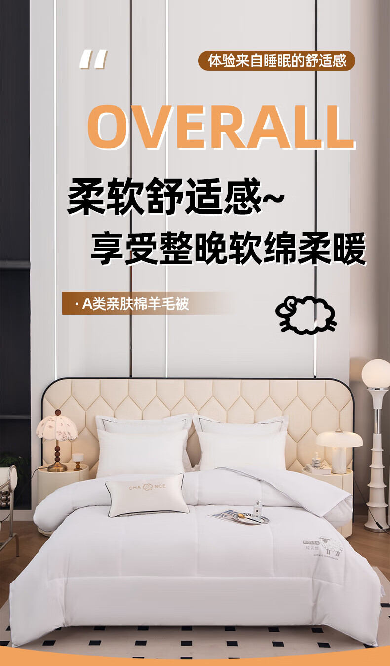 恒源祥高端A类进口澳洲绵羊毛被子10斤厚冬被冬被8斤加厚被芯春秋被保暖 白色 150*200cm【3.6斤春秋被】