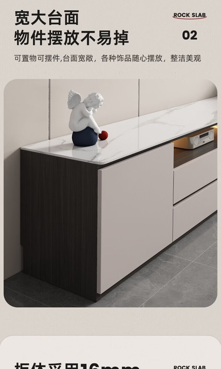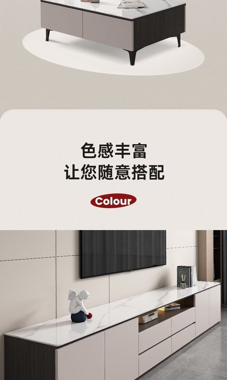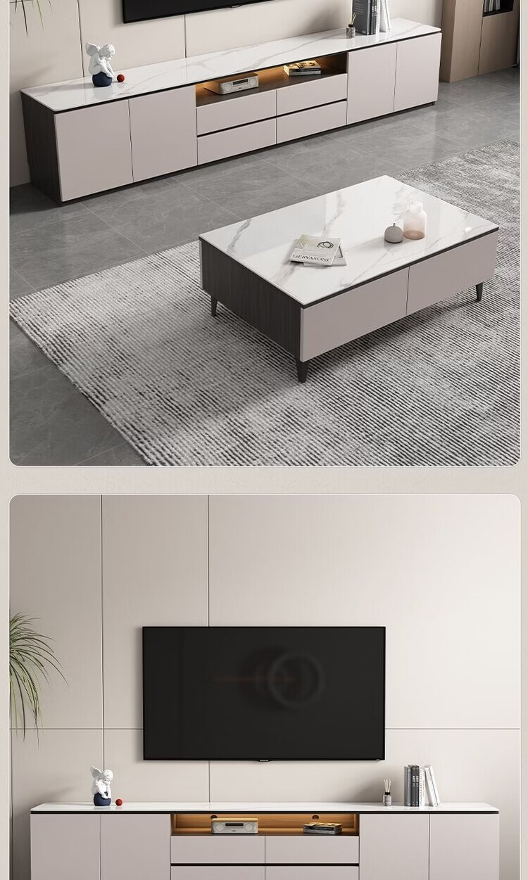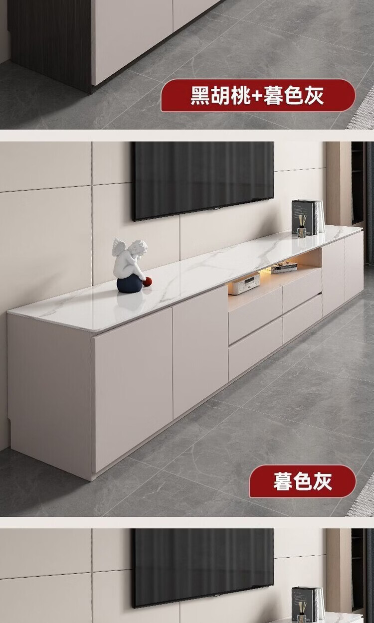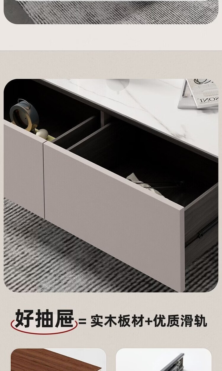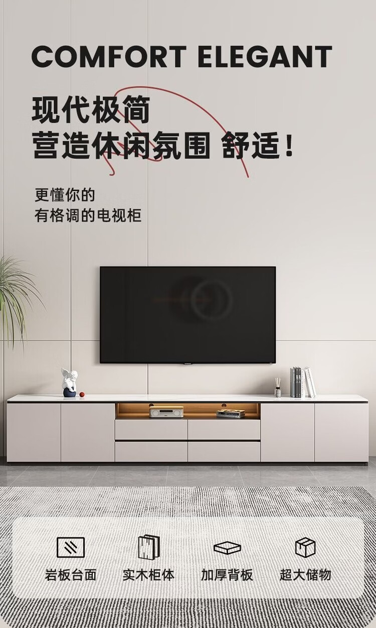 欣慕雅实木电视柜落地简约轻奢风储物柜家用客厅茶几岩板电视柜组合柜 【科技灰+卡其】木质桌面-【不带岩板】 1.6米长实木电视柜【包安装】