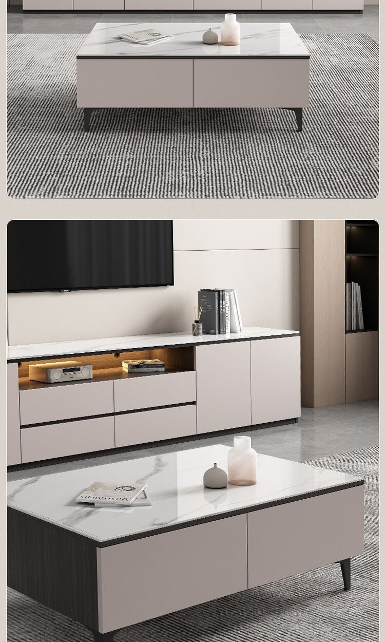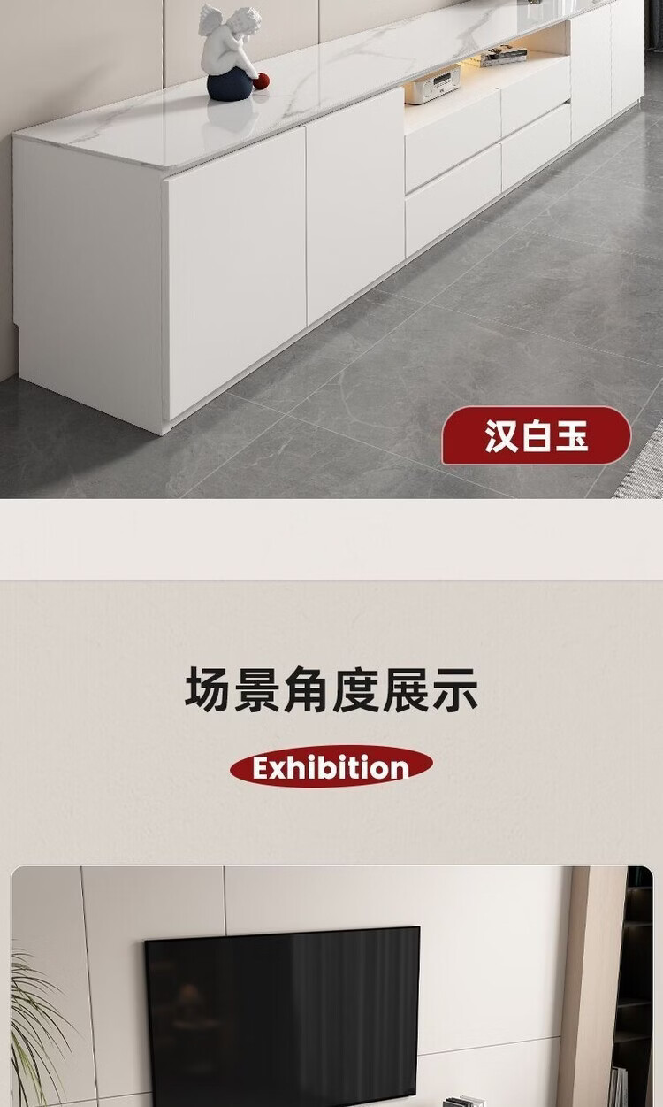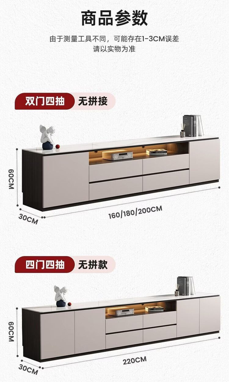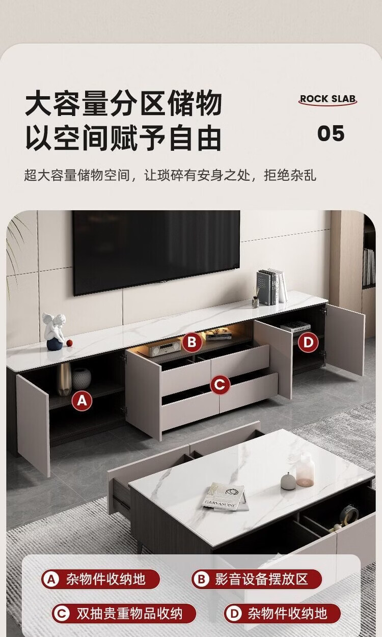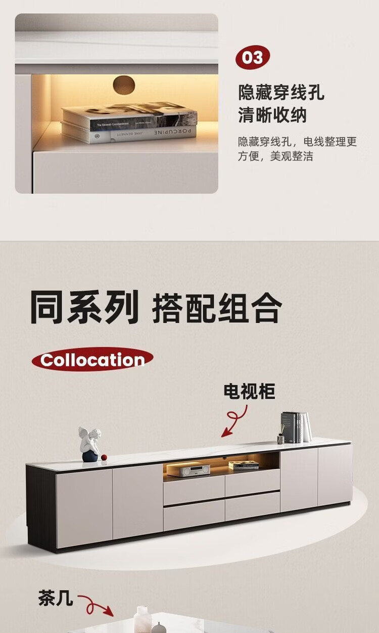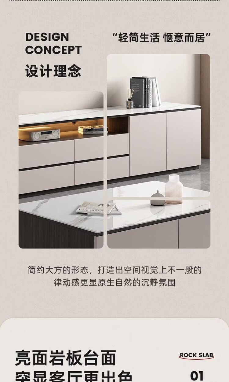 欣慕雅实木电视柜落地简约轻奢风储物柜家用客厅茶几岩板电视柜组合柜 【科技灰+卡其】木质桌面-【不带岩板】 1.6米长实木电视柜【包安装】