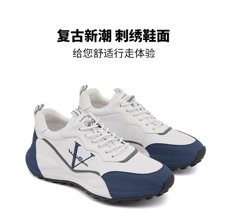 未毕(VICKI BROWN)法国品牌VB男鞋【法奢系列】舒适透气皮鞋男防滑休闲鞋包底老爹鞋 白色 38