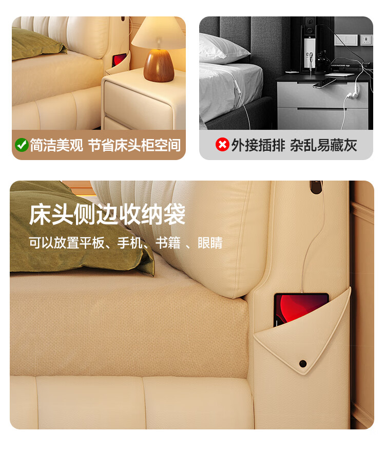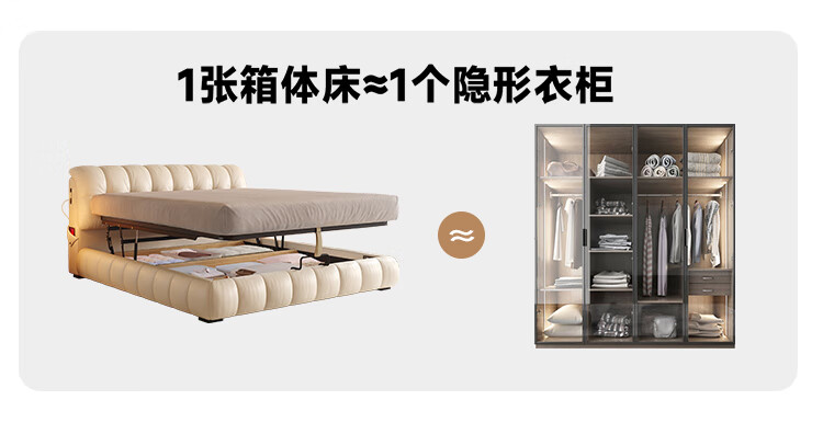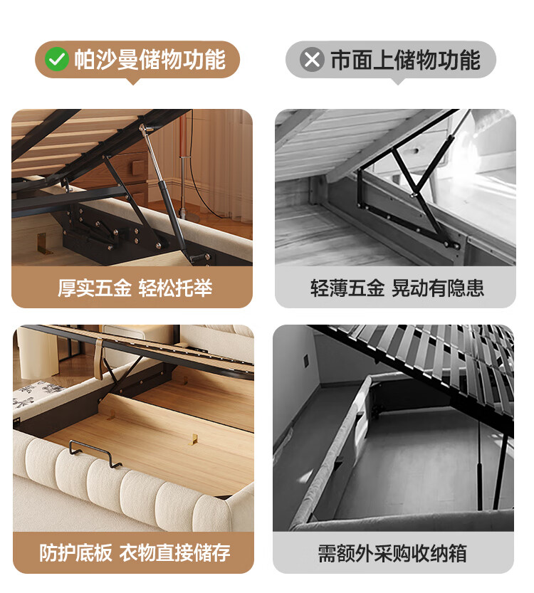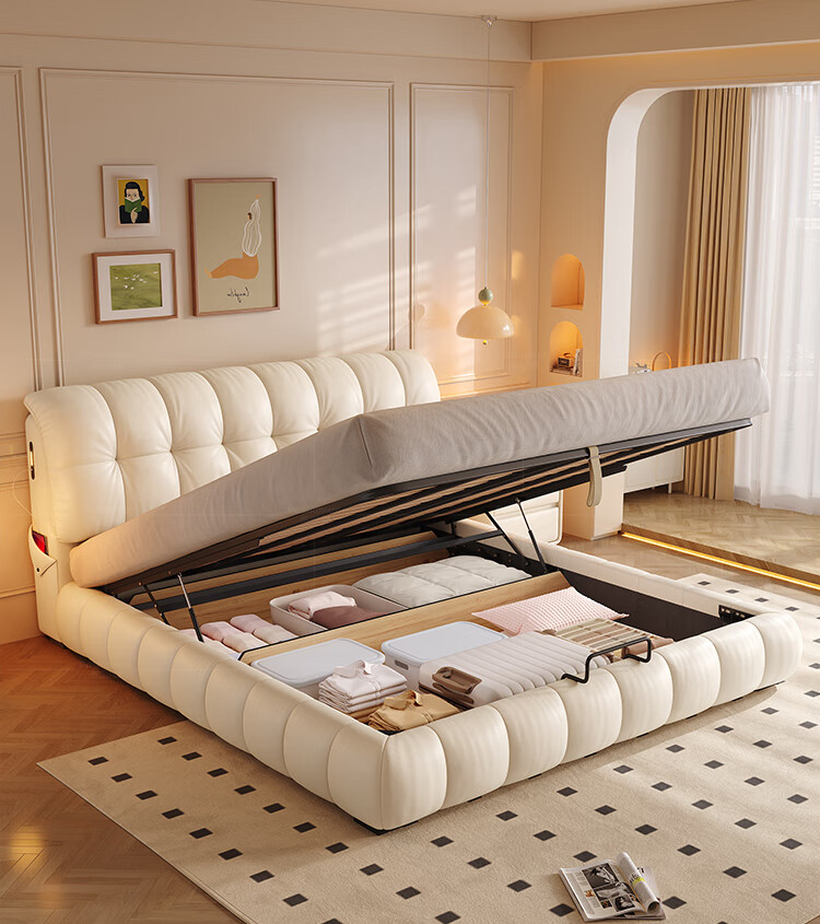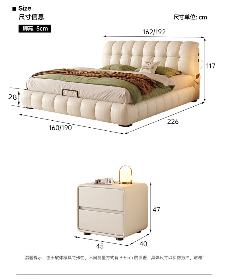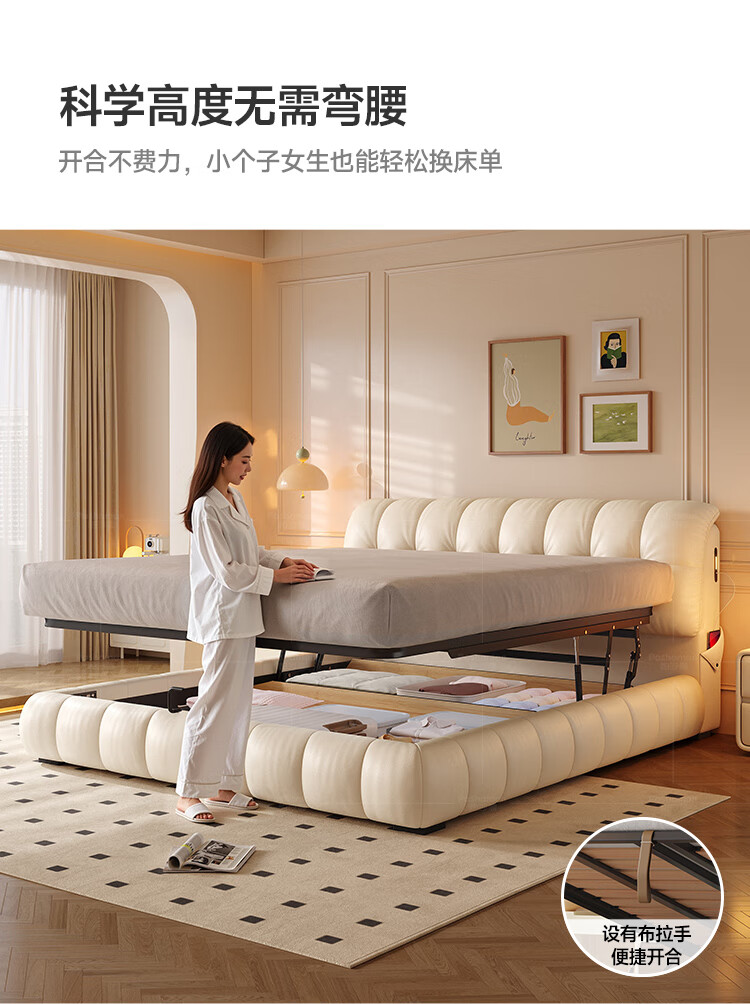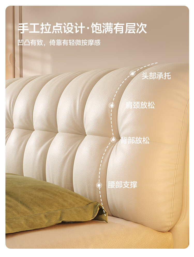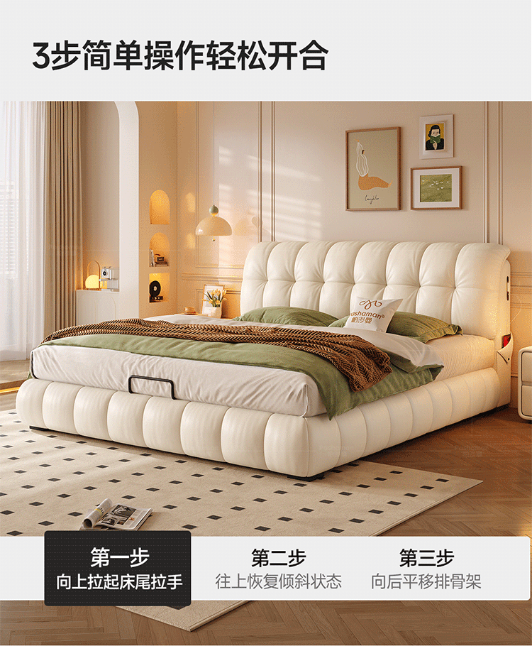 帕沙曼国货补贴真皮床奶油风泡芙主卧双人床现代简约床2025年新款7023CP 【榉木】单床+TR1801#床头柜*2 框架结构1800mm*2000mm