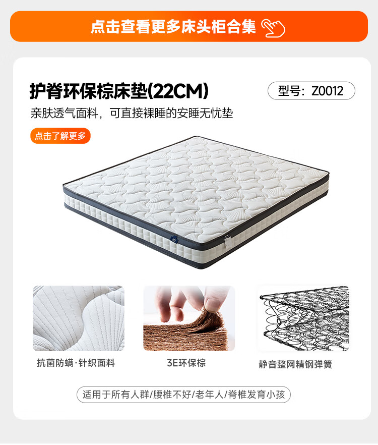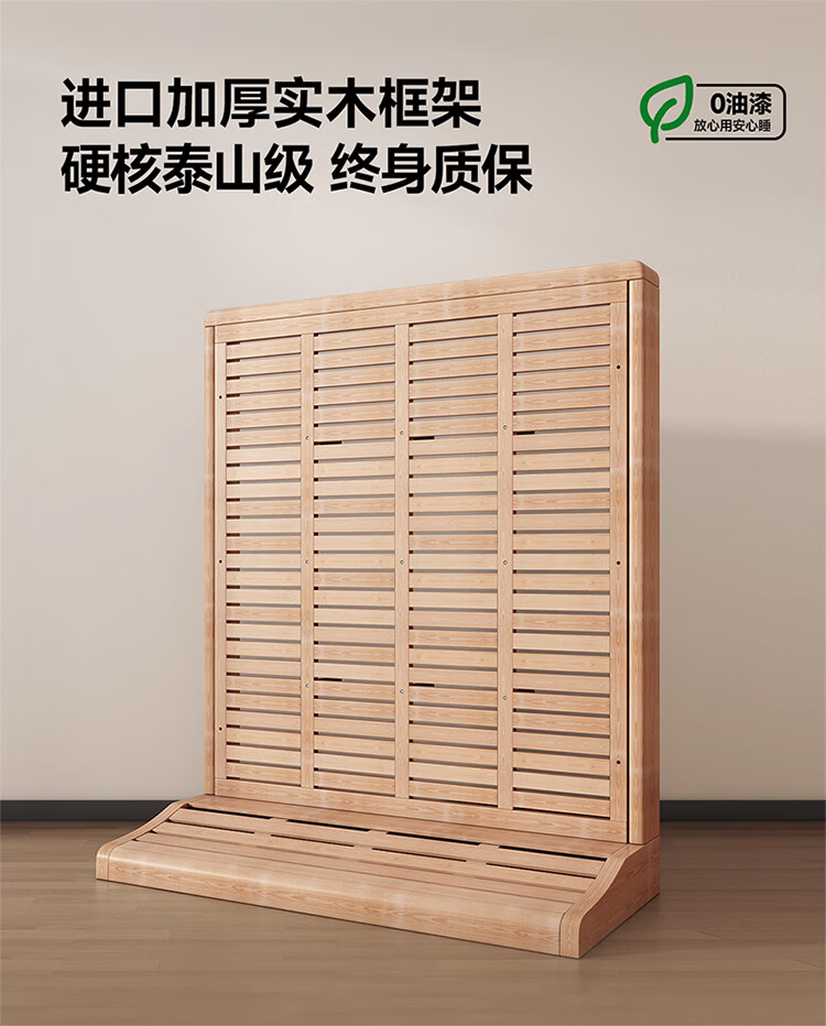 科虎实木床双人床1.8x2米主卧大床家用1.5x2米 橡木床+5cm椰棕垫【松木排骨架】 180*200cm