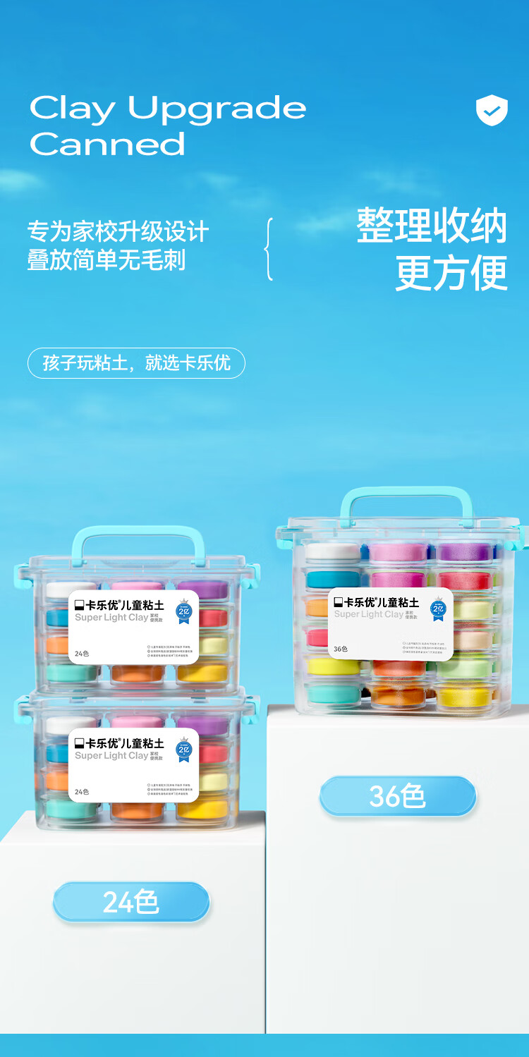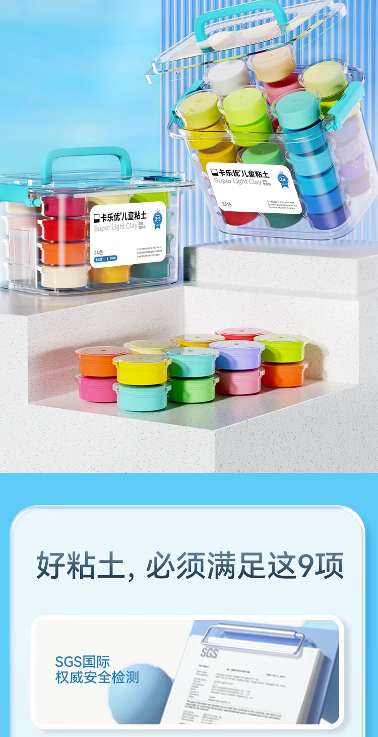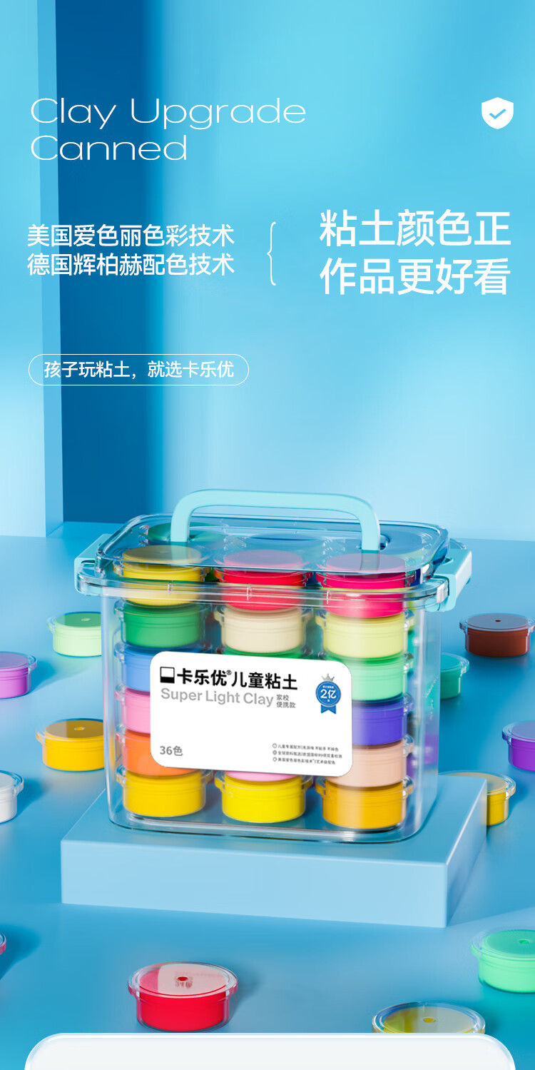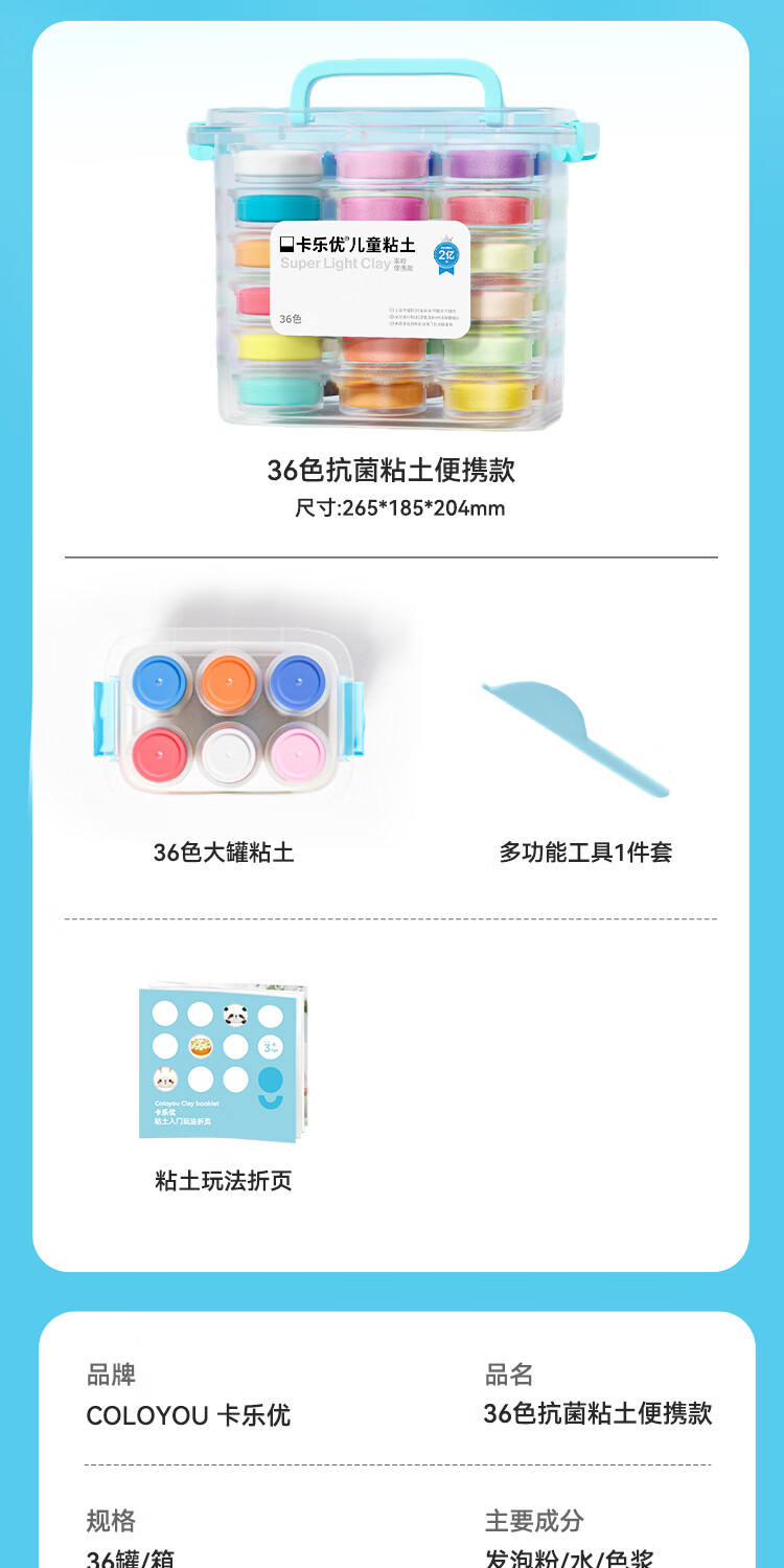 卡乐优(Coloyou)36色超轻粘土儿童无毒彩泥橡皮泥黏土泡泡泥套装手工幼儿园透明箱