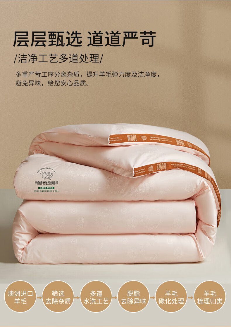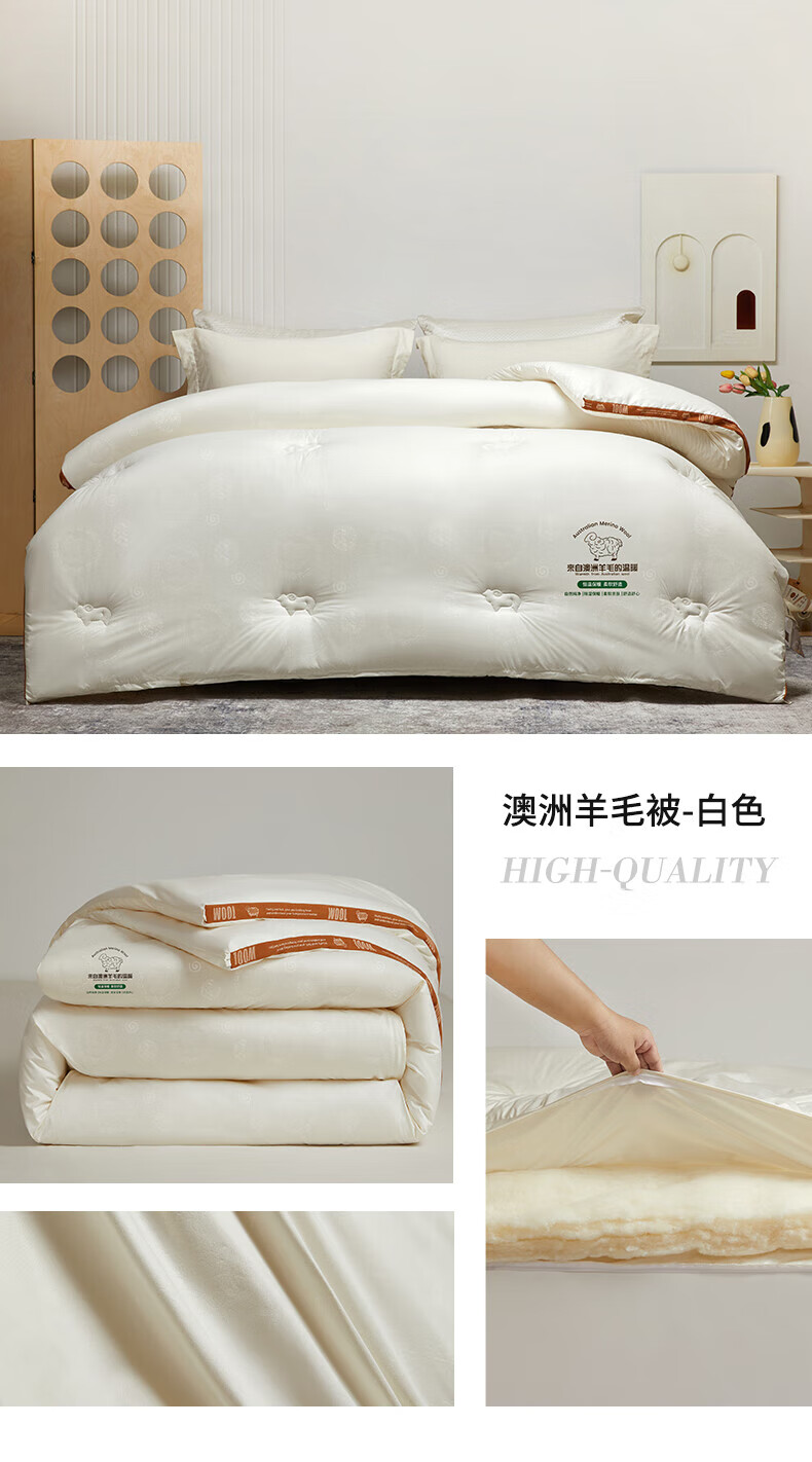 恒源祥澳洲羊毛被春秋被冬被芯加厚保暖羊毛单人被子10斤厚棉被褥 白色 150x200cm【4斤夏被】
