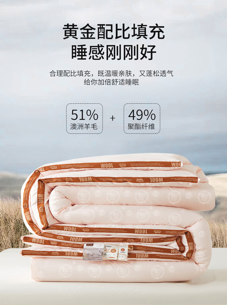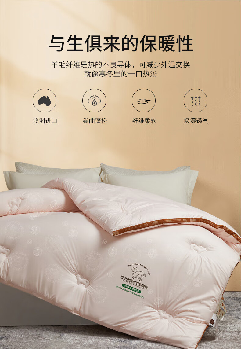 恒源祥澳洲抗菌羊毛被冬被褥加厚保暖双人春秋被子冬季棉被10斤结婚被芯 白色 150*200cm3.8斤春秋被】