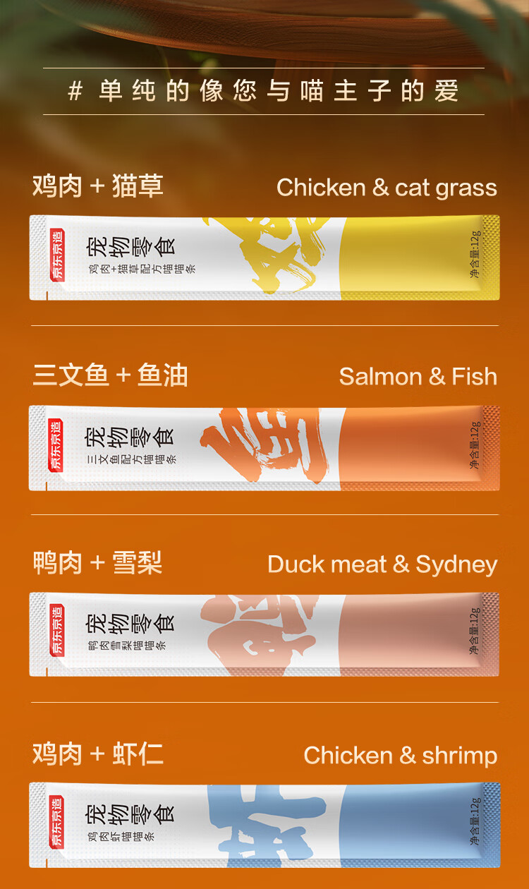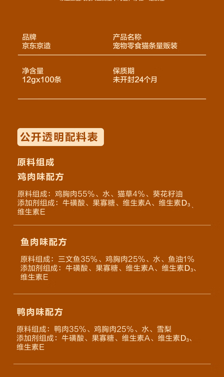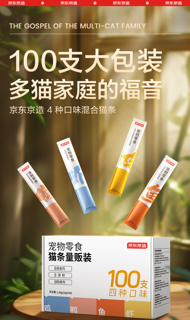 京东京造 益生元猫条12g*100支混合装猫零食湿粮软罐头成猫幼猫通用