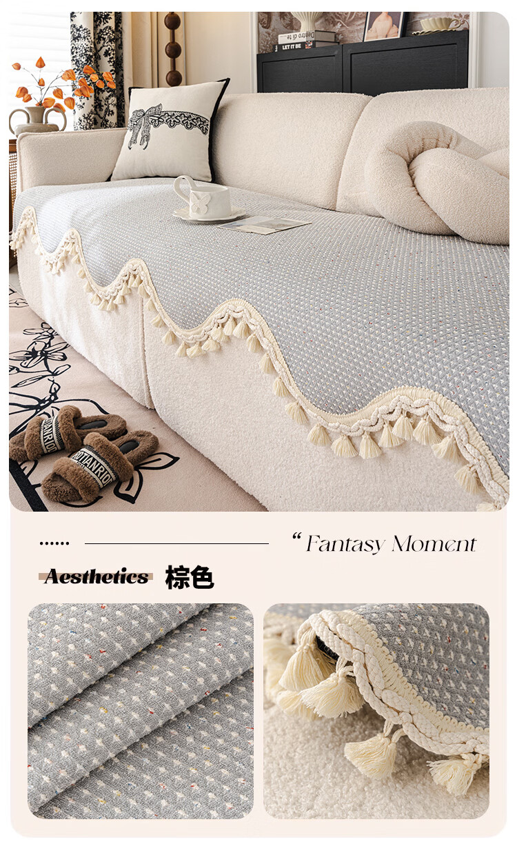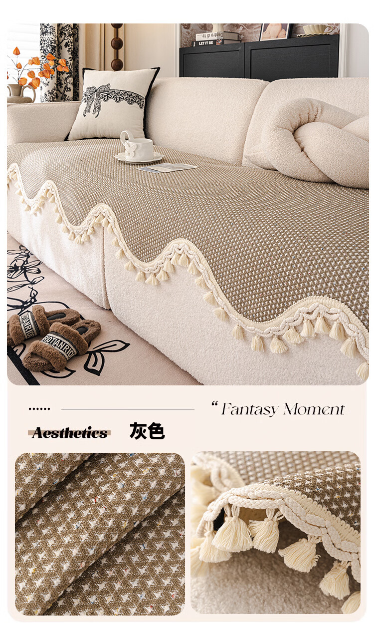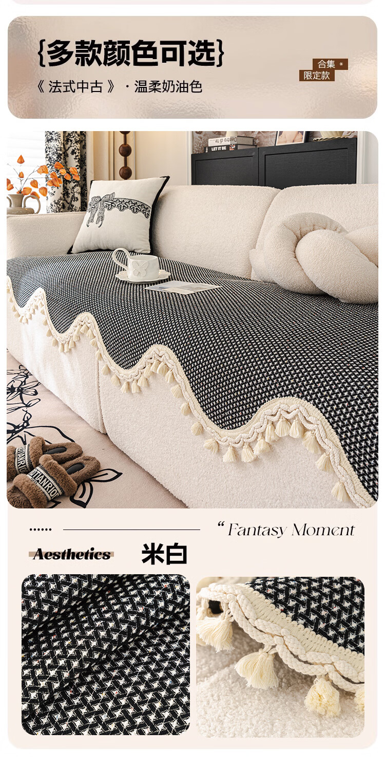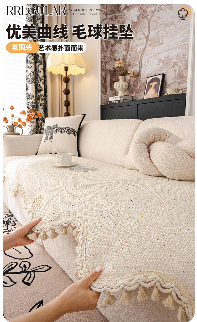 金拾美月高级感毛球异形沙发垫四季通用2025新款直排沙发坐垫套防滑盖布 异形苏叶-黑色 70cm*70cm