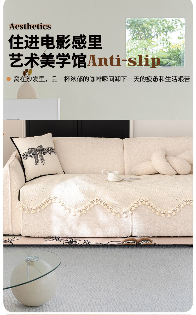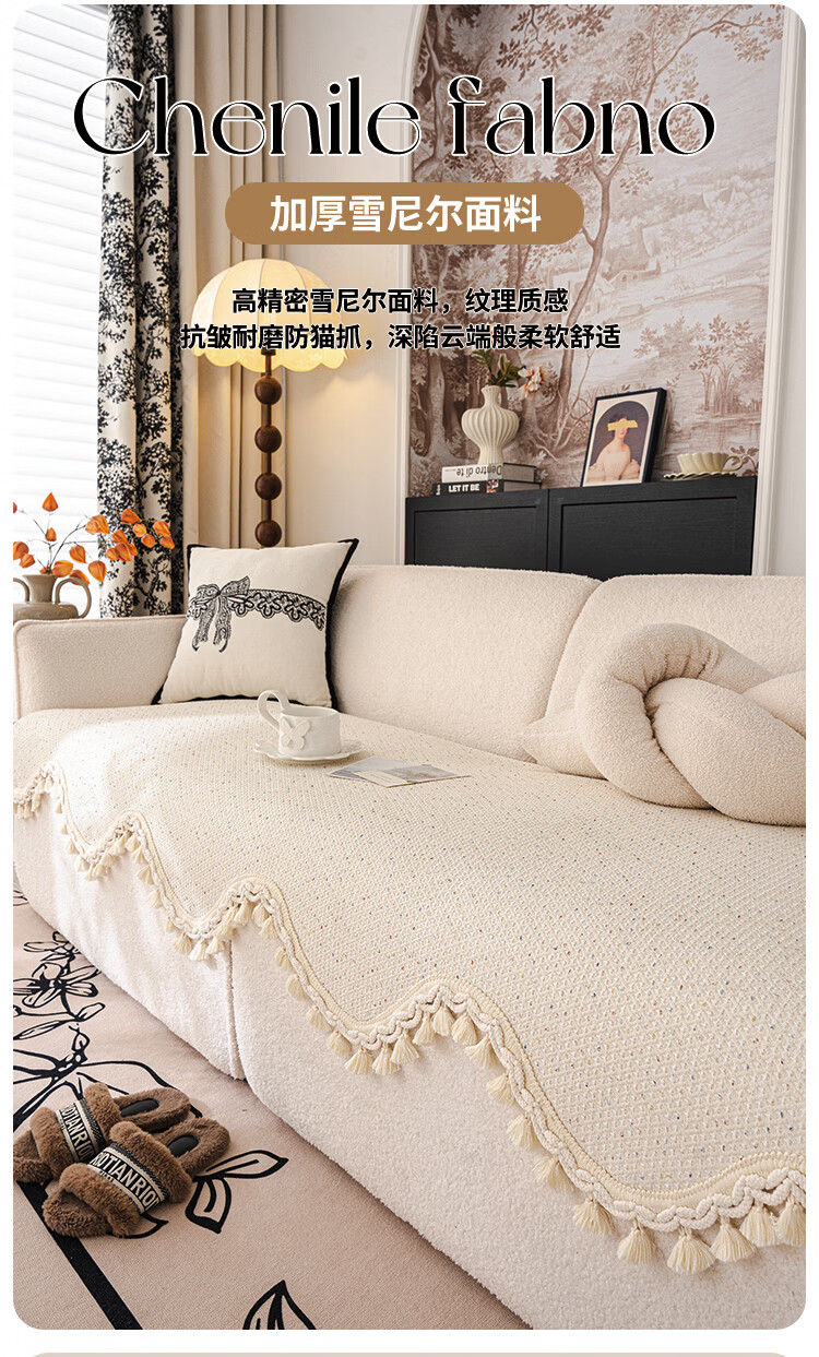 无印良品兔毛绒沙发垫冬季2025新款加厚毛绒防滑奶油风不掉毛皮沙发坐垫子 瑞比特-白色 【冬季毛绒 防静电】 90*240cm (三人位/小四人位)