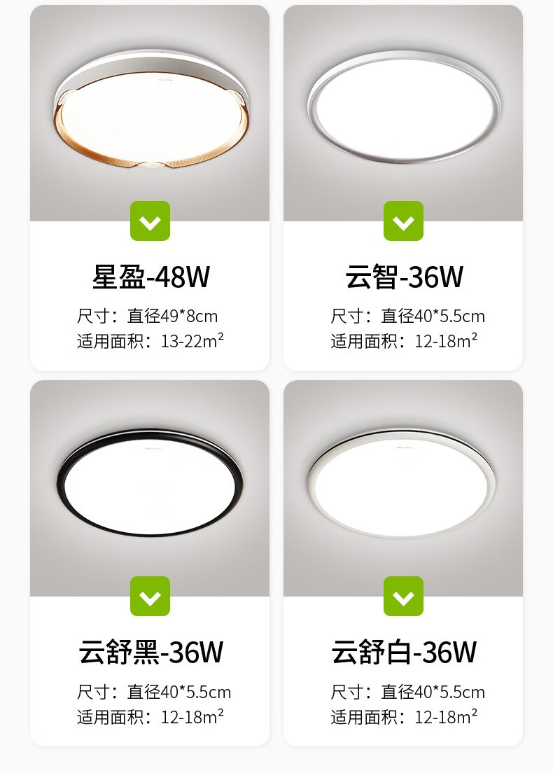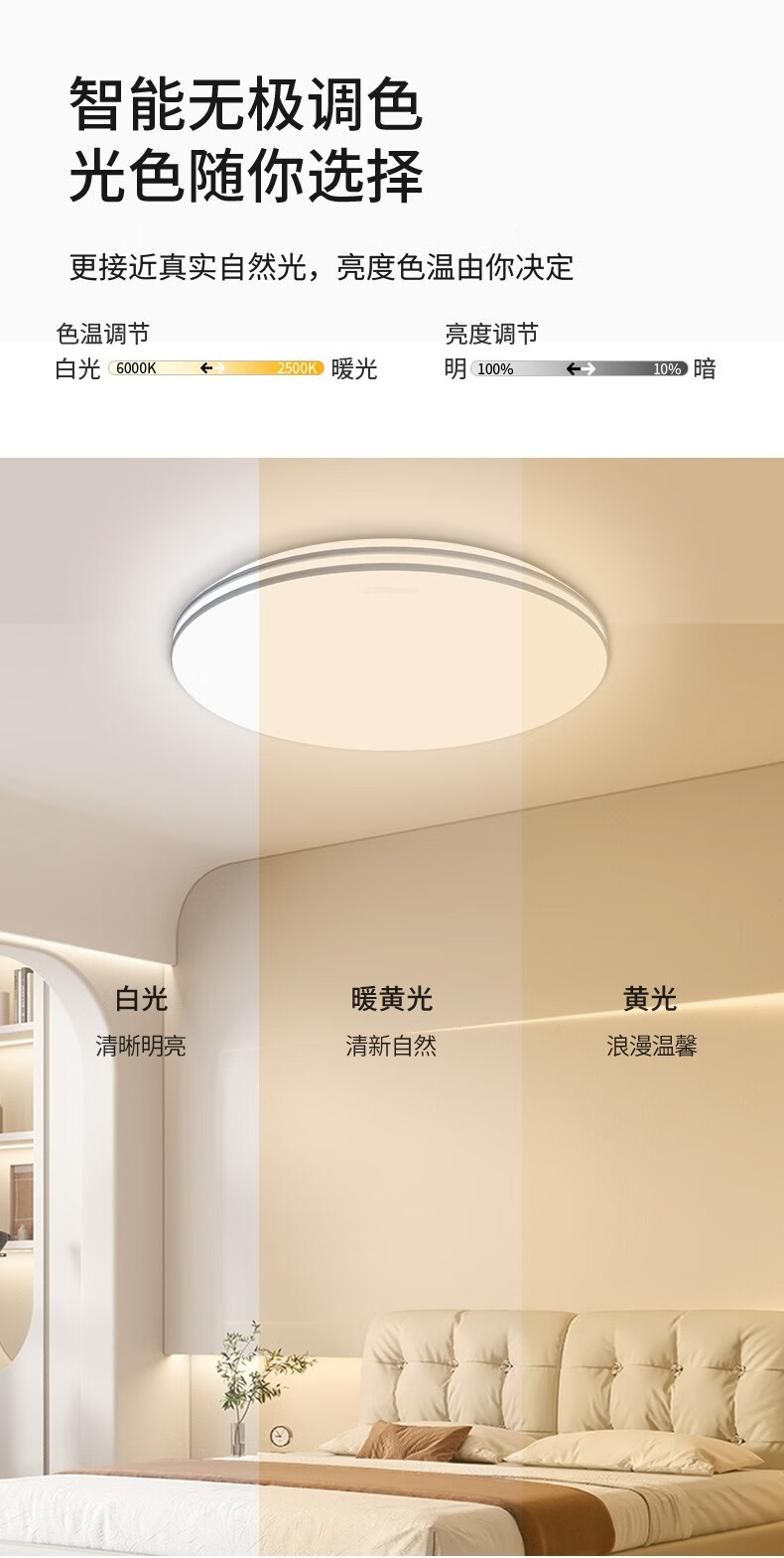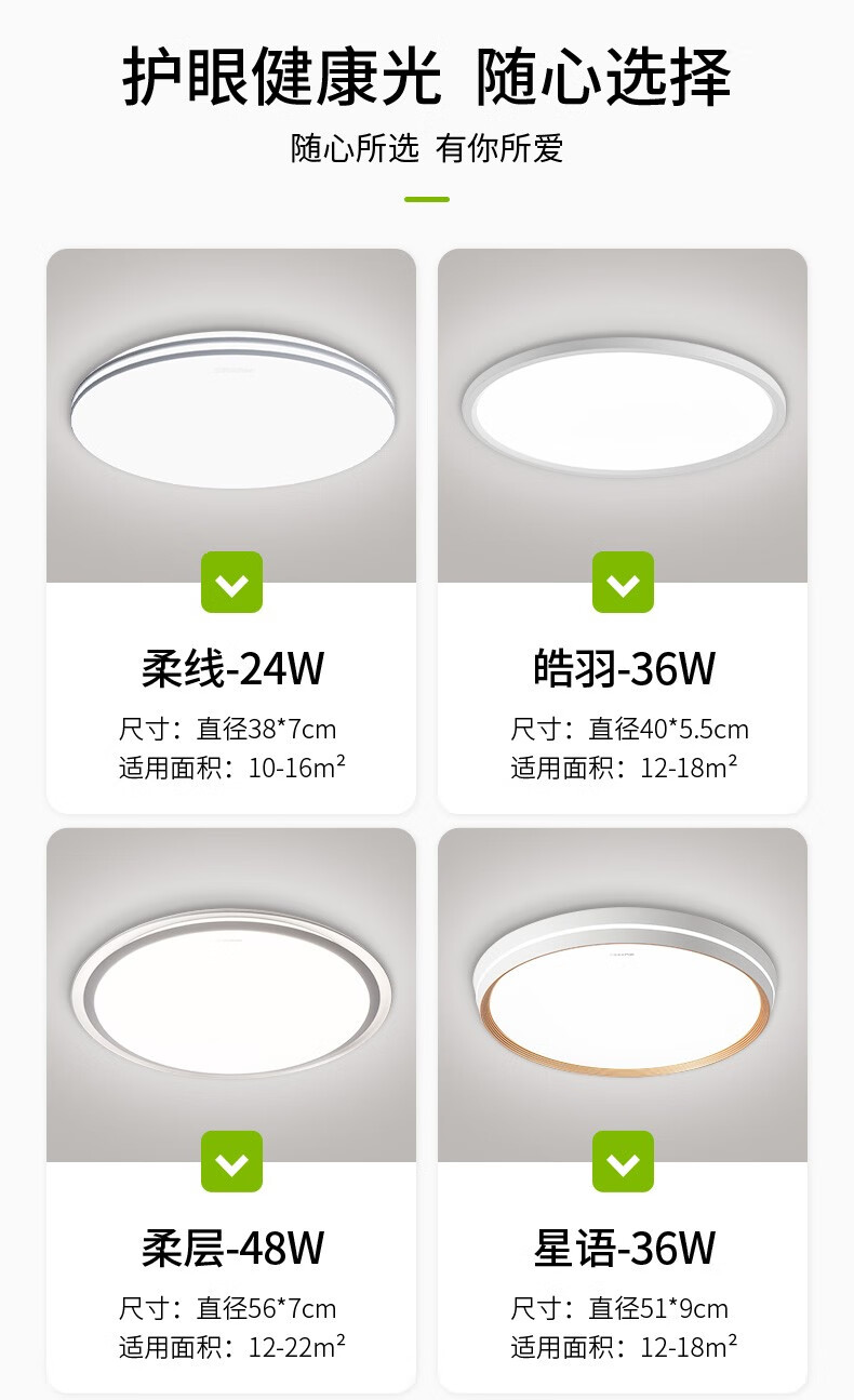 三雄极光全光谱护眼吸顶灯 卧室灯房间灯智能现代简约全屋灯具 【卧室灯护眼智能】36W 云智
