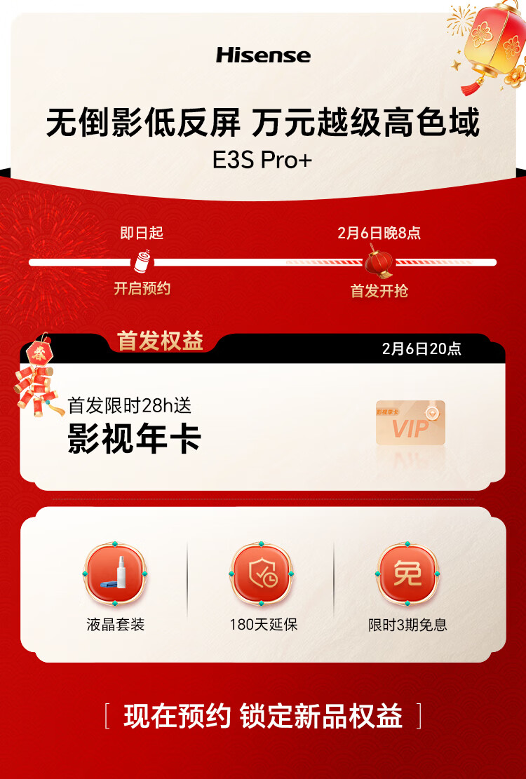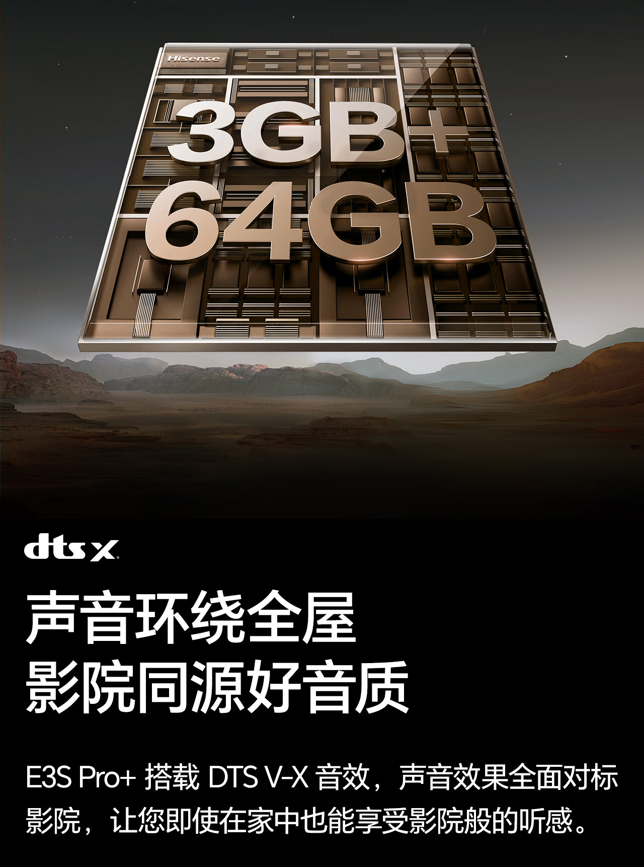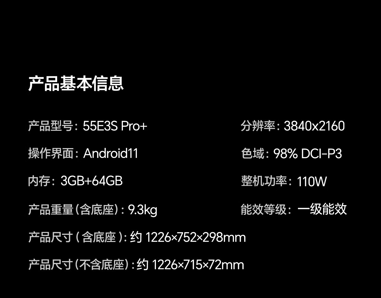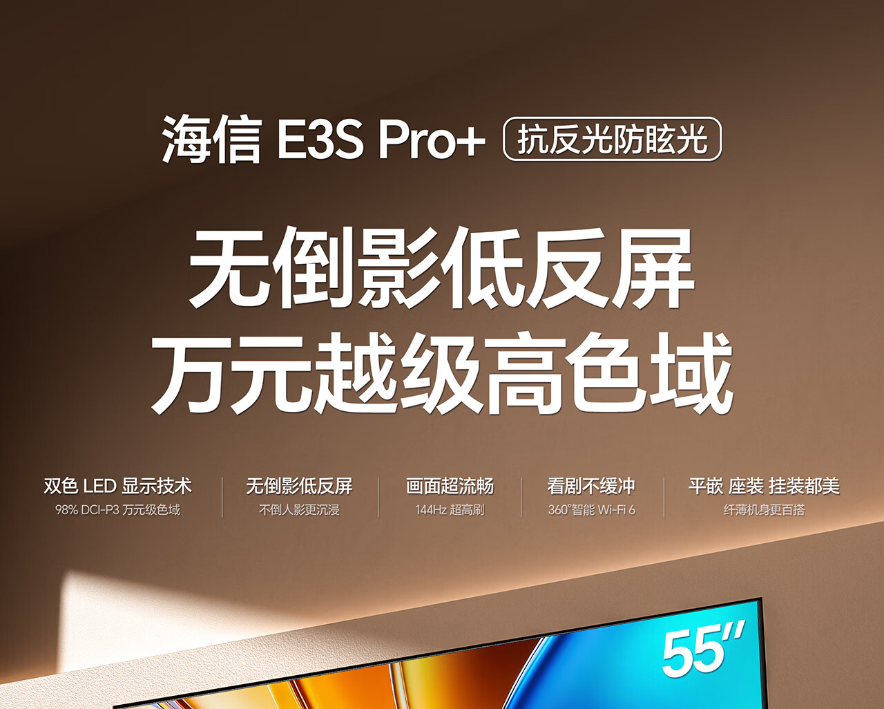 海信电视E3S Pro+ 55英寸 万元级高色域 抗反光无倒影 144Hz高刷 Wi-Fi6 一级能效限时补贴E3QHPro升级