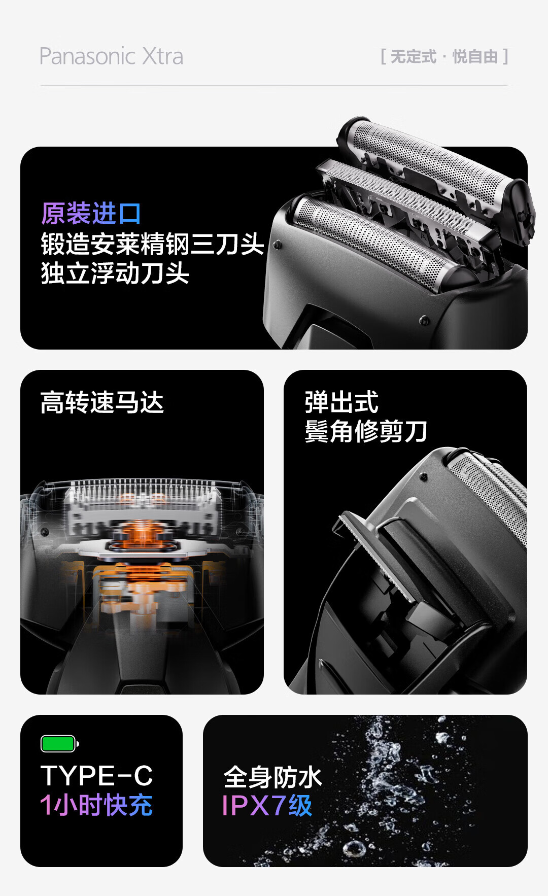 松下(Panasonic)Xtra赛博电动剃须刀往复式男士刮胡刀进口送男友老公生日新年礼物ES-ERT4