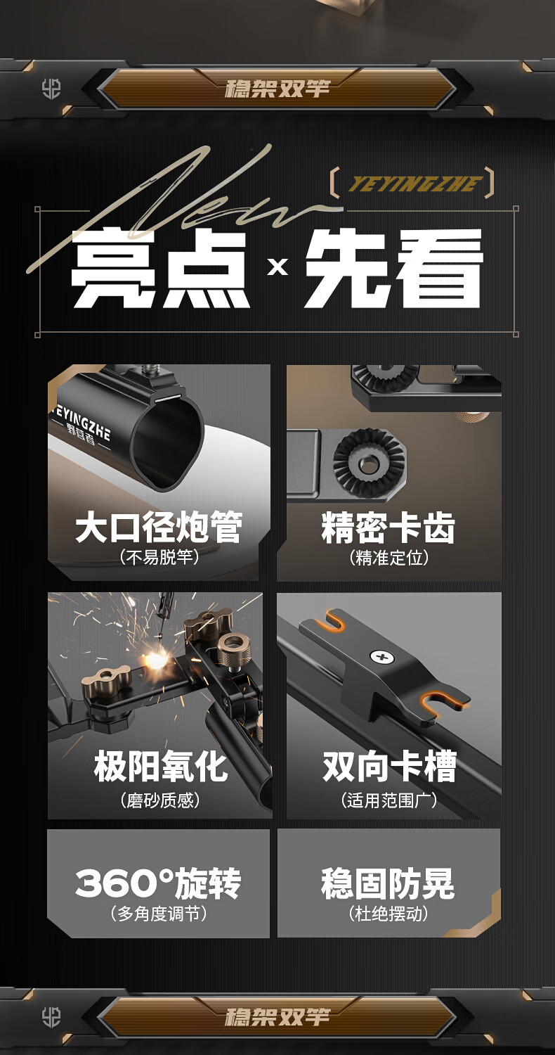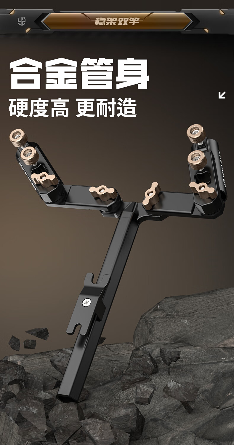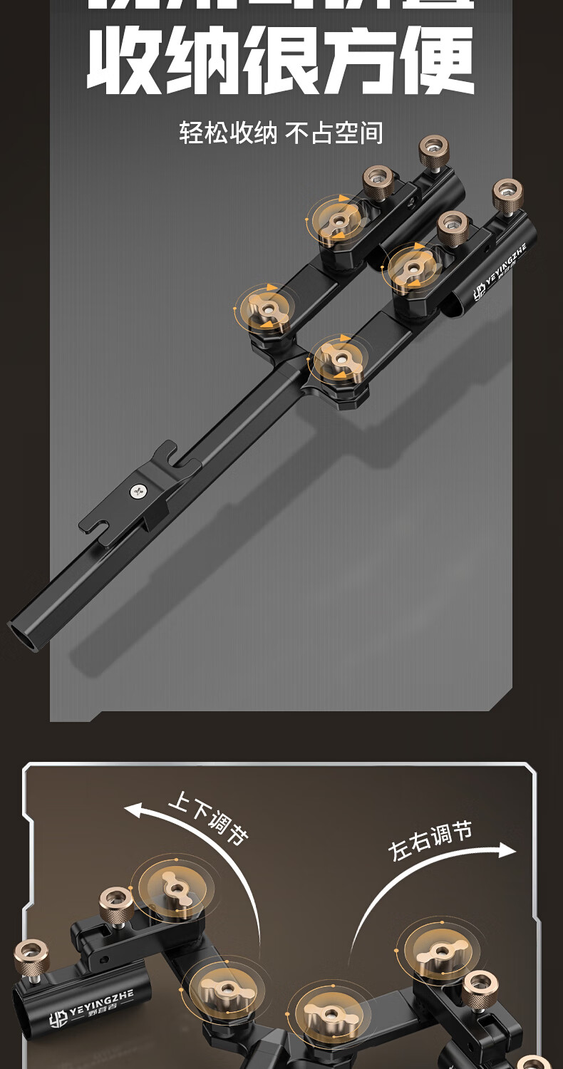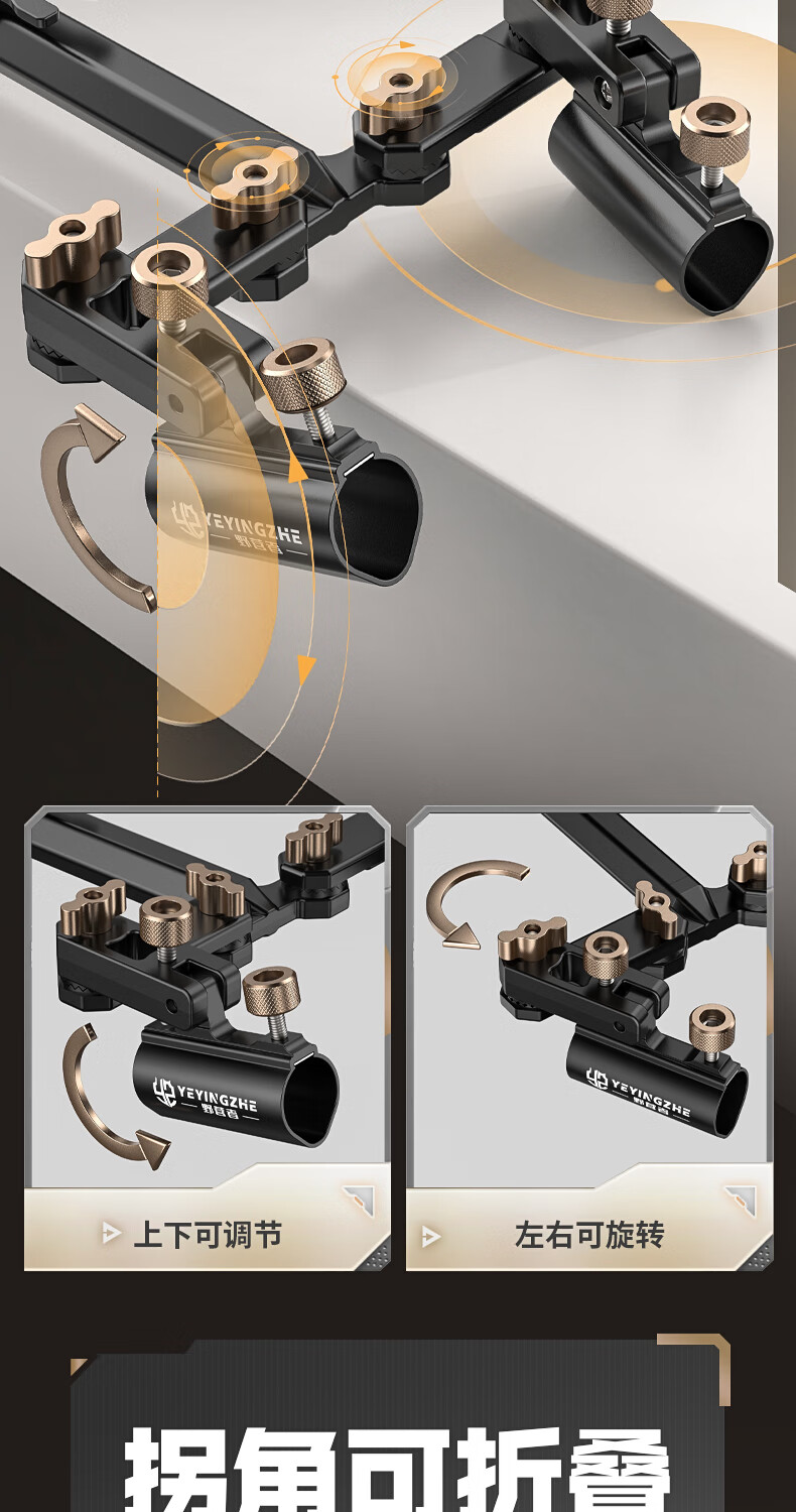 野营者双万向双炮台支架一拖二双头拐角钓箱配件钓椅双杆钓鱼杆架 黑战神【折叠双万向】+双向卡槽-通用双炮台架
