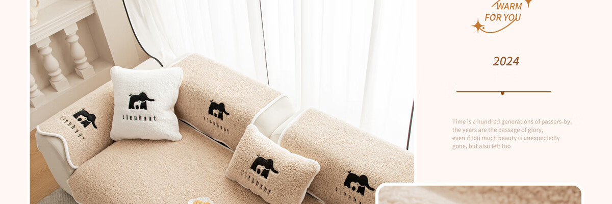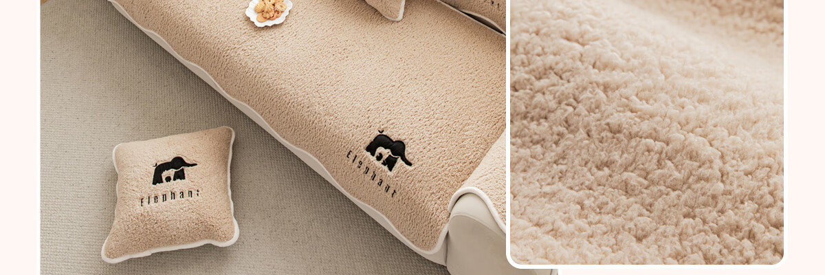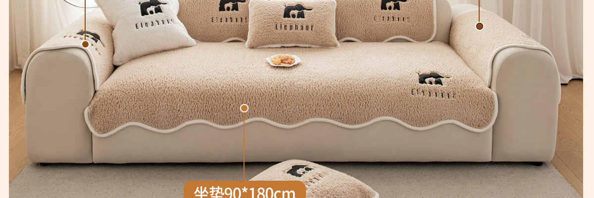 无印良品皮沙发专用垫秋冬高级感羊羔绒沙发盖垫加厚毛绒防滑秋冬沙发垫 绒象-卡其【加厚羊羔绒 不粘毛不掉毛】 90*240cm (三人位/小四人位)