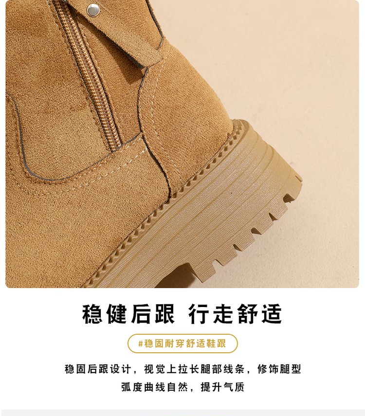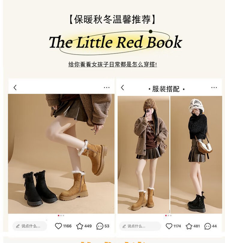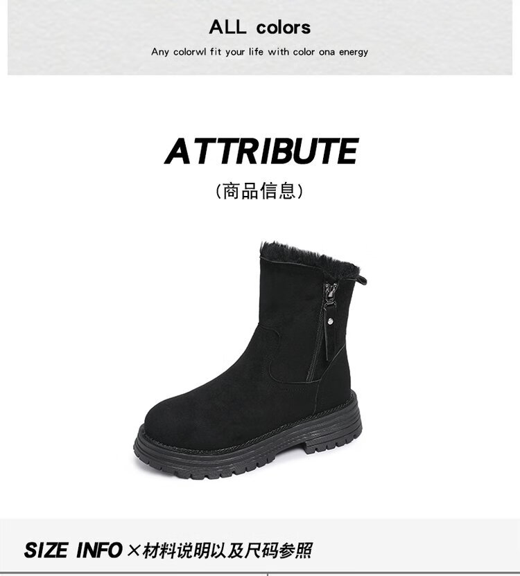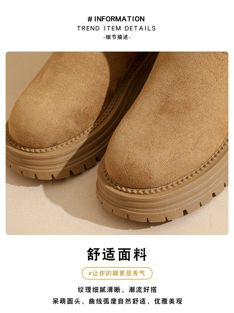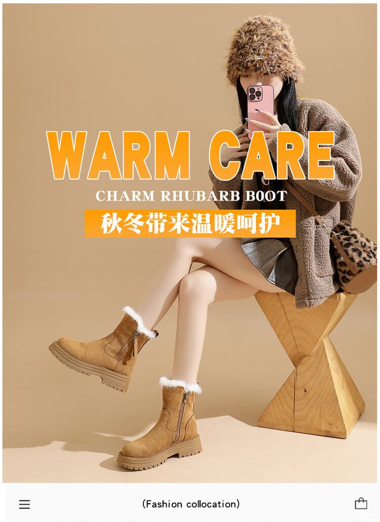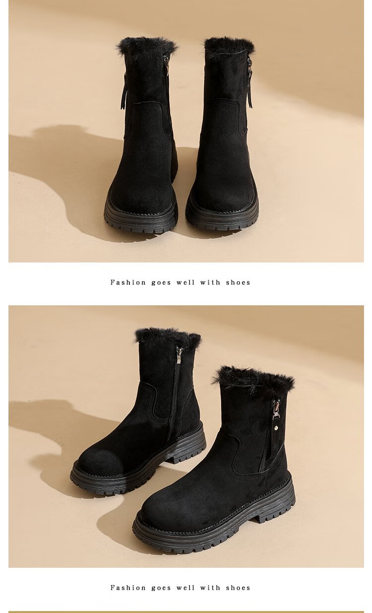 大东爆侧拉链橡胶中跟(3-5cm)人造短毛绒雪地靴冬季织物靴子粗跟 卡其色 40