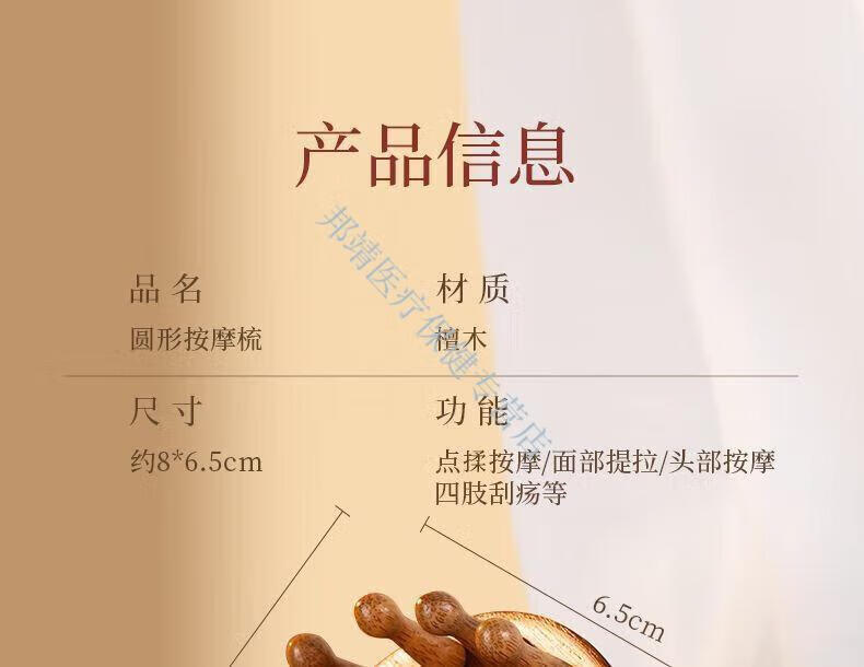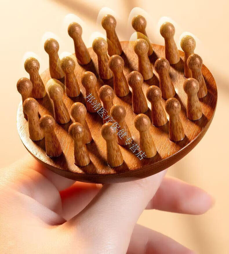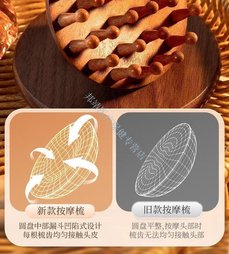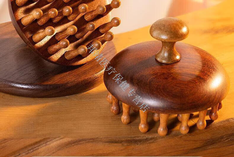 通用高端檀木圆盘梳头皮按摩梳头部经络梳子疏通神器头疗梳子全身通用