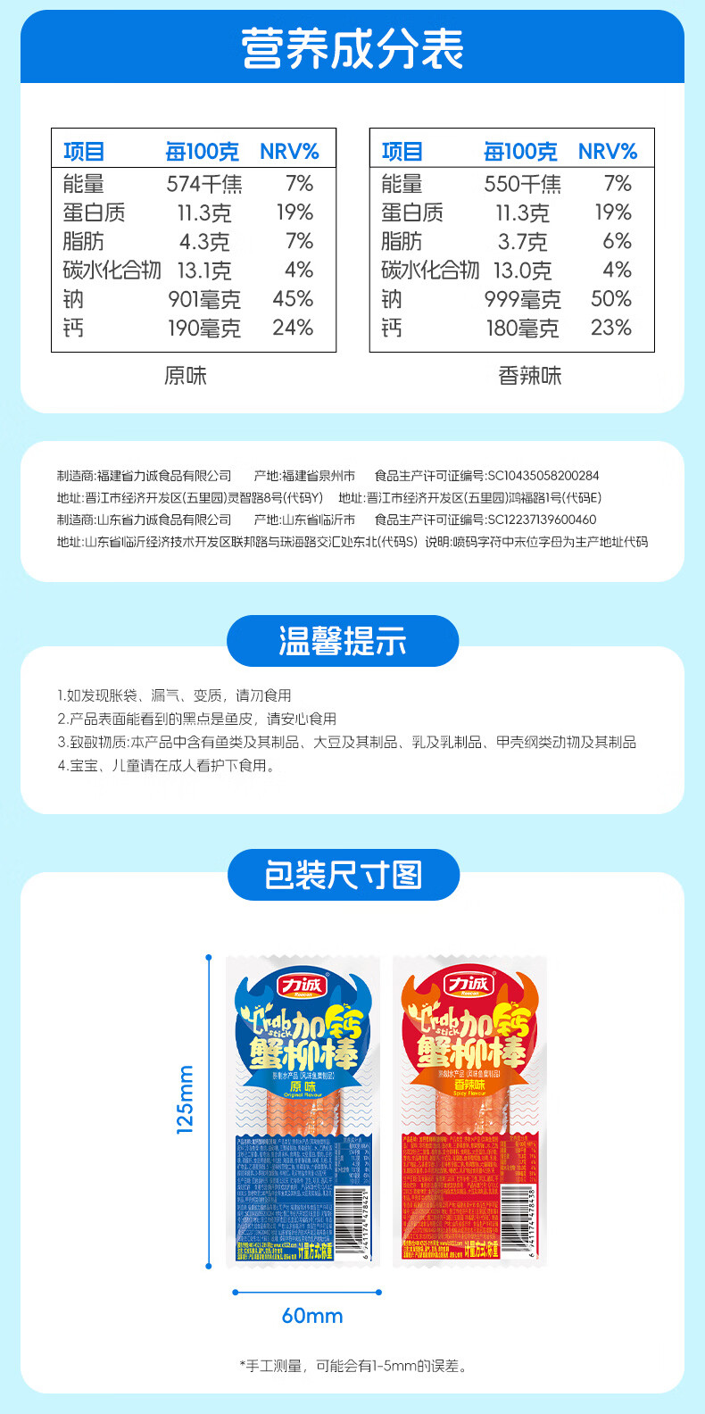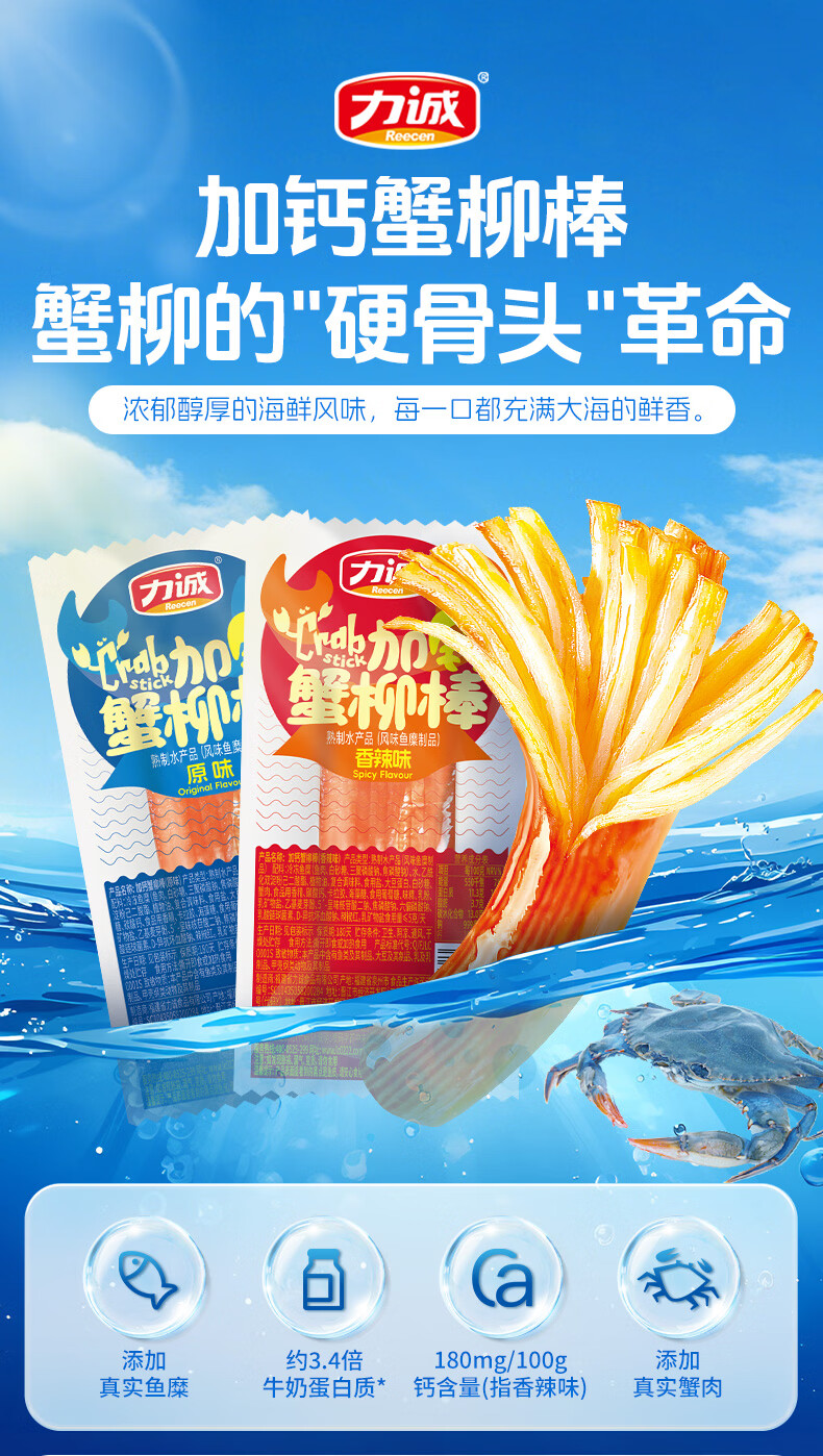 力诚鳕鱼肠低脂肪儿童零食高蛋白鱼肠鳕鱼香肠健康海味肉肠 加钙蟹柳【原味】18g*30支