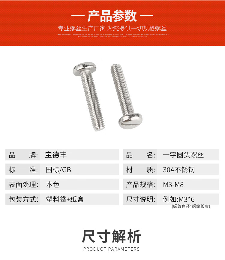 宝德丰304不锈钢一字盘头螺丝钉开槽一字平圆头螺钉螺栓GB67国标紧固件 M1.6x3[20只]