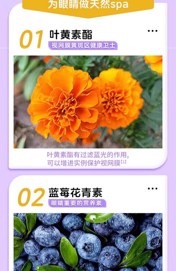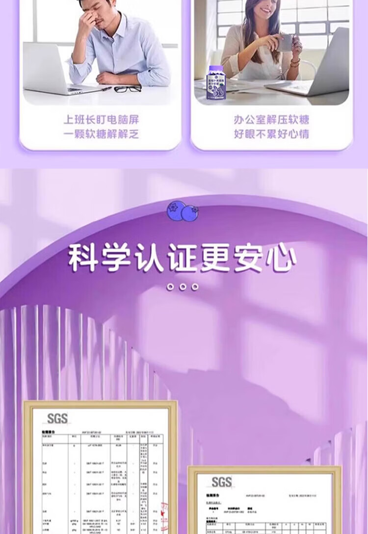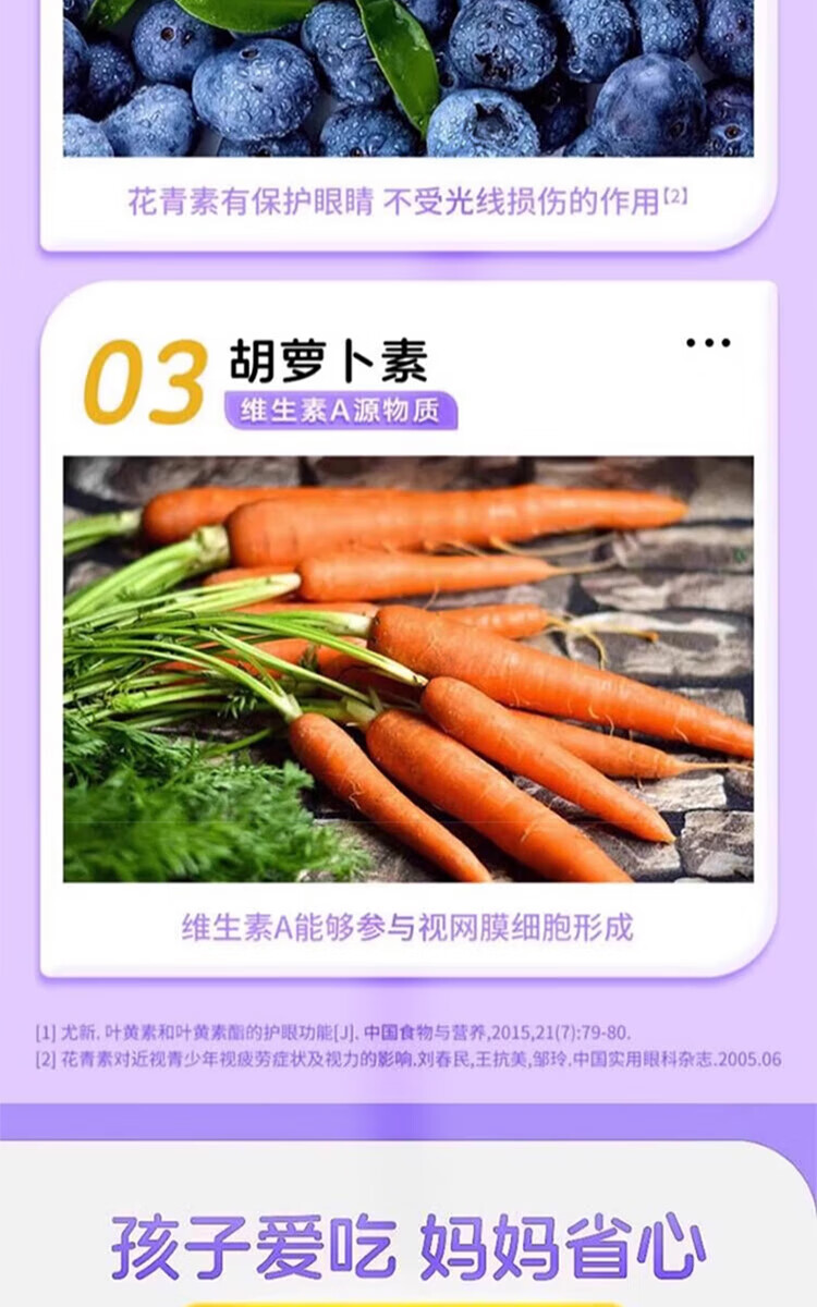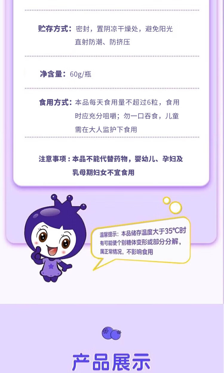 蓝莓叶黄素酯软糖儿童学生成年呵护眼睛干涩模糊熬夜零食滋润眼 蓝莓叶黄素酯软糖60g(30颗)*1瓶